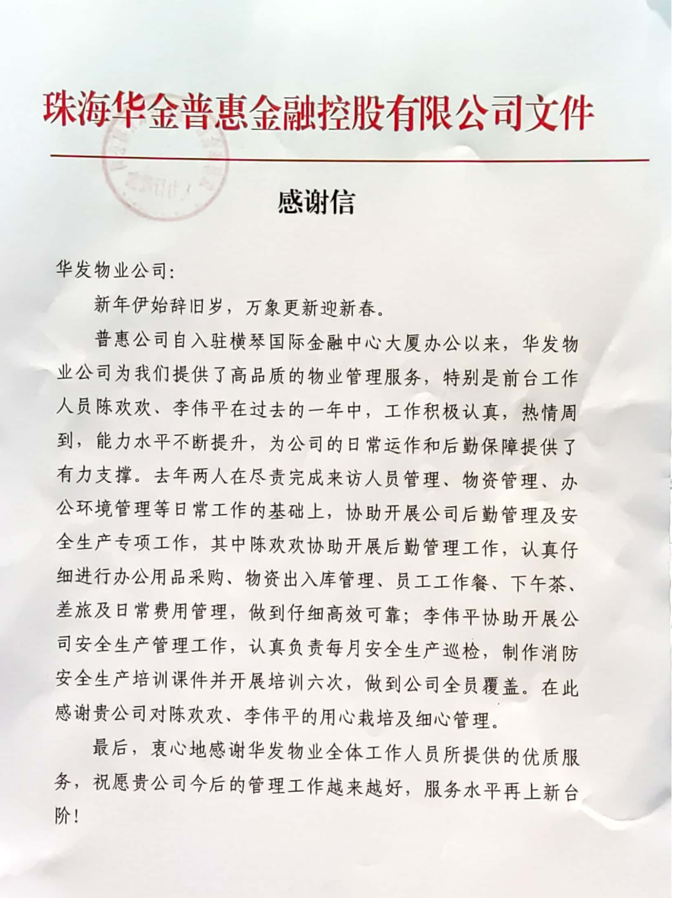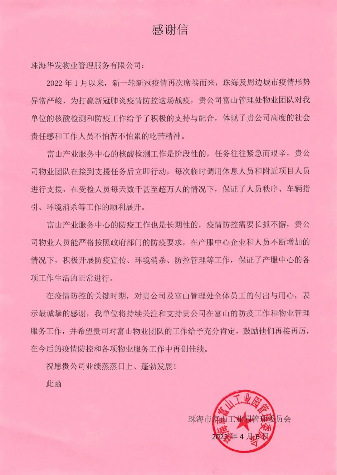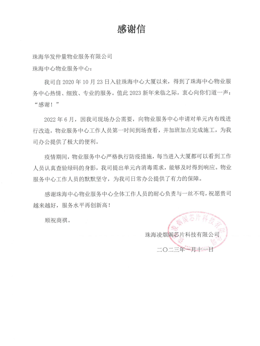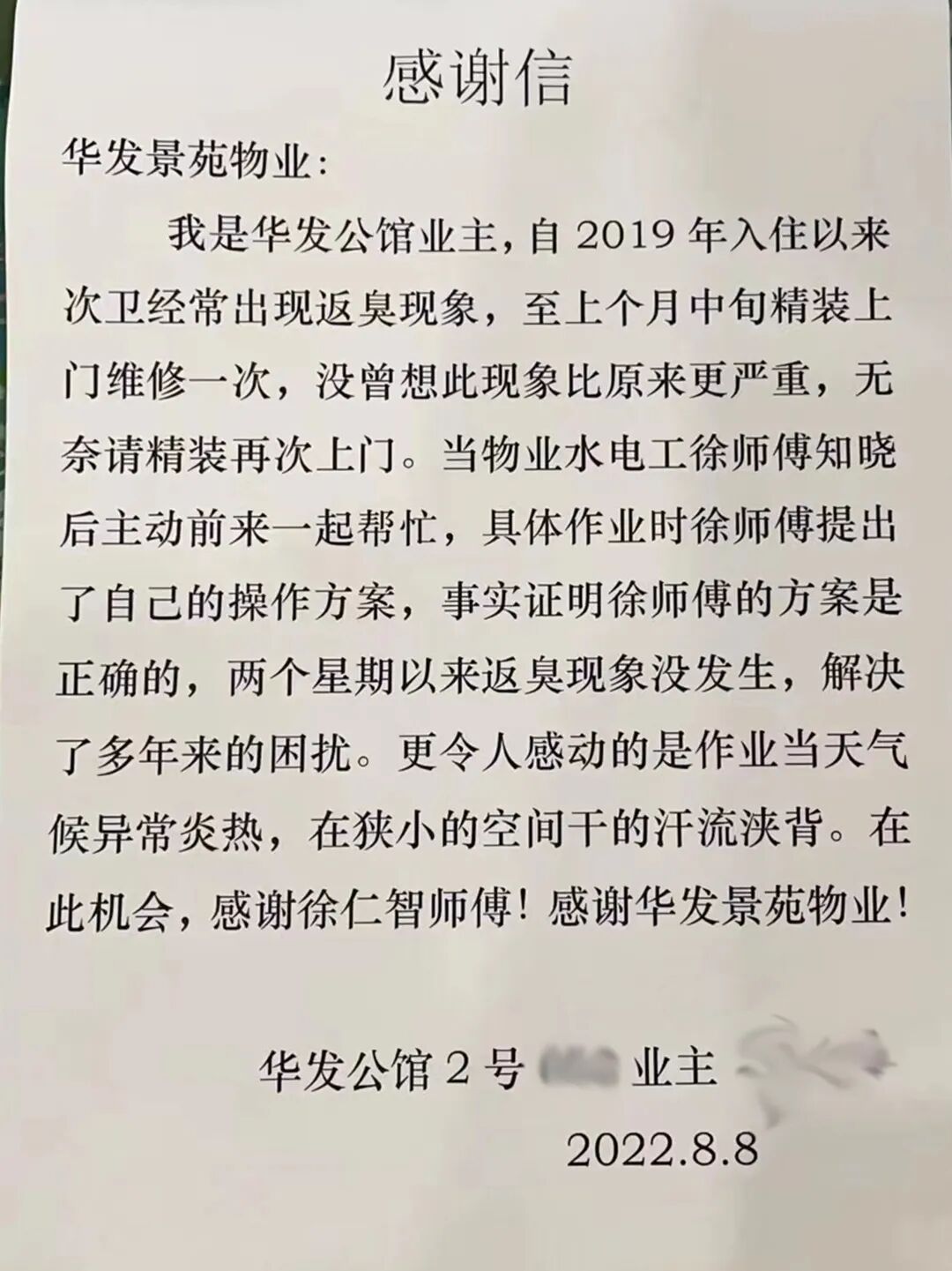 // 珠海华发新城四六期业主表扬