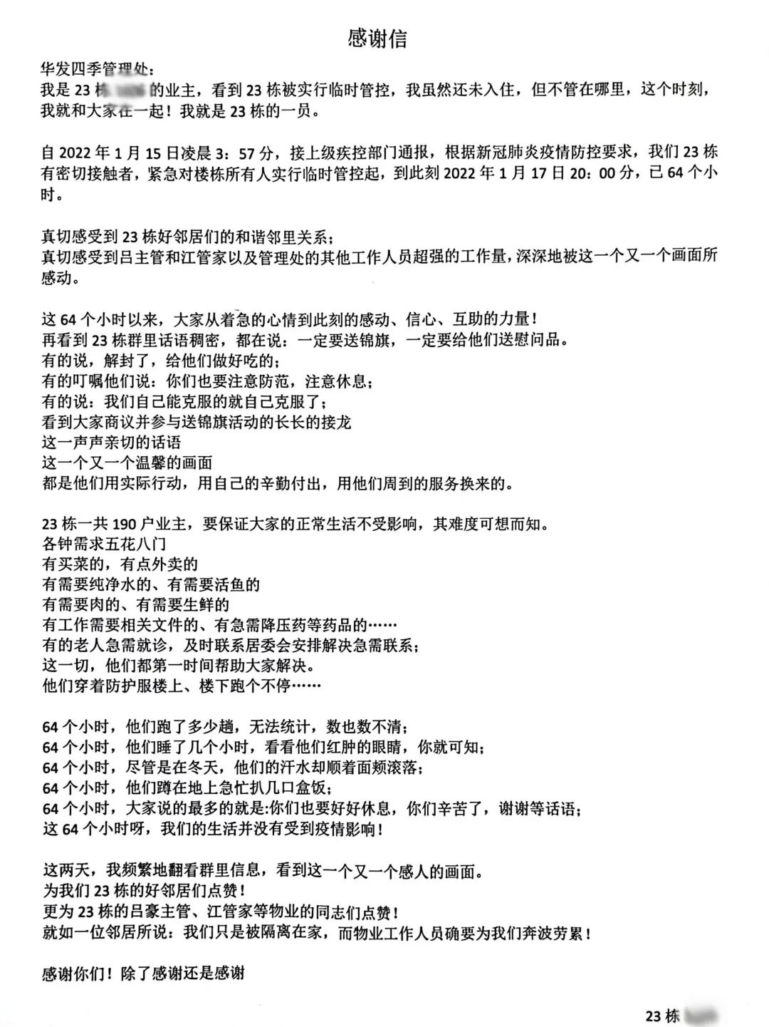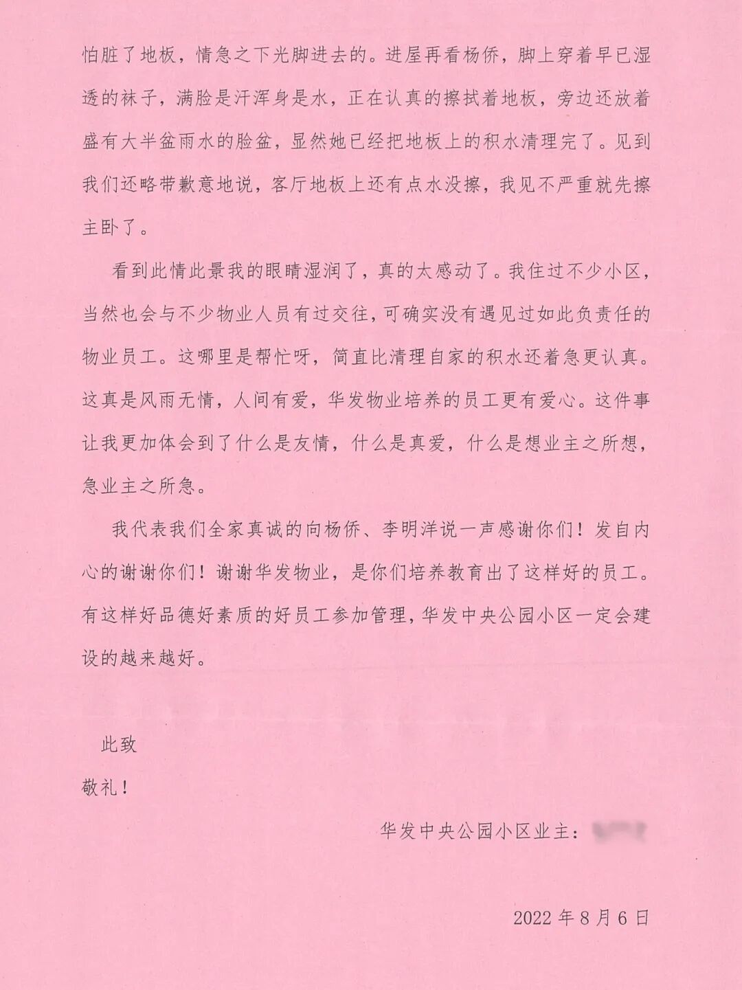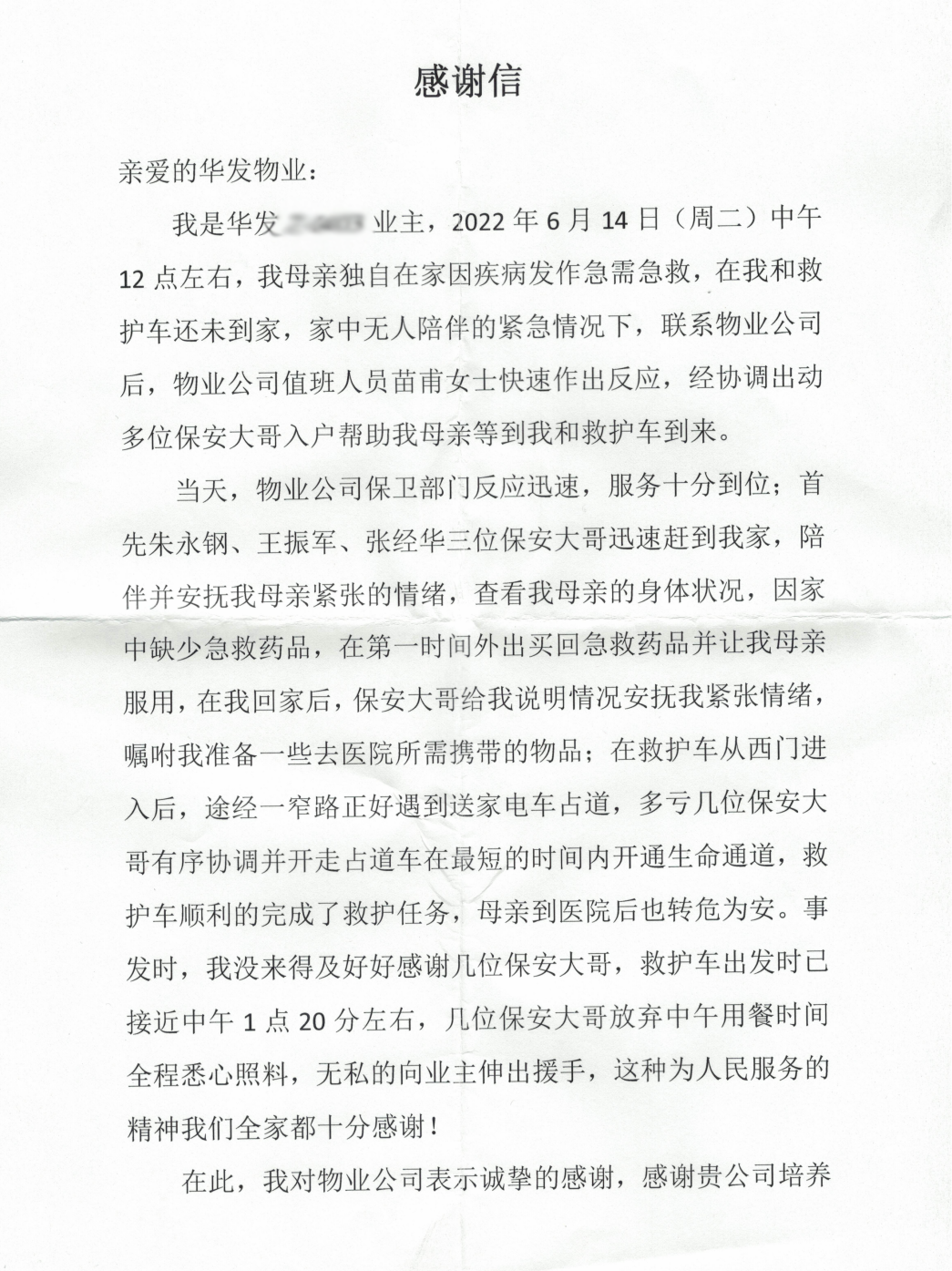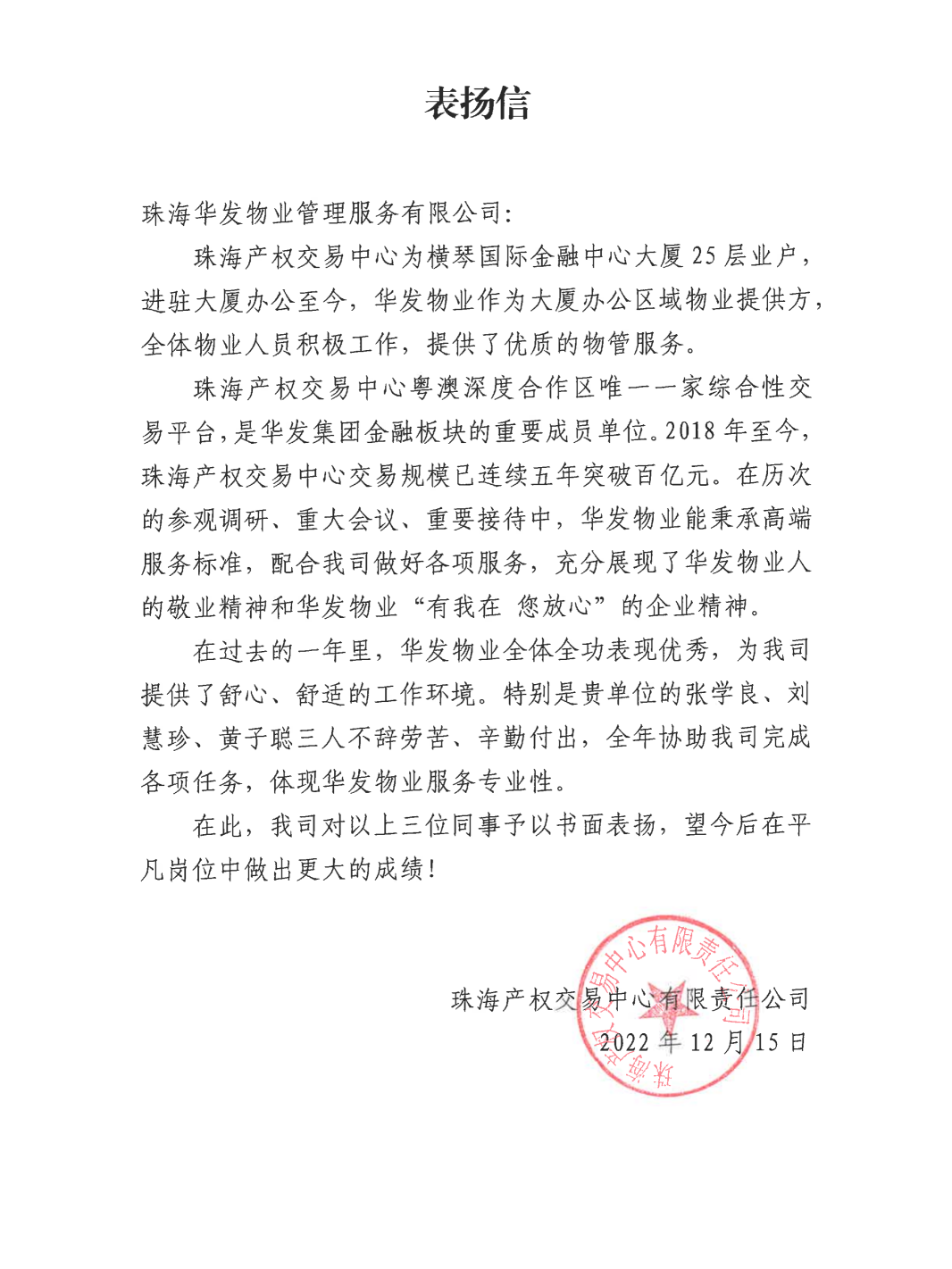 // 珠海华发新城四六期业主表扬