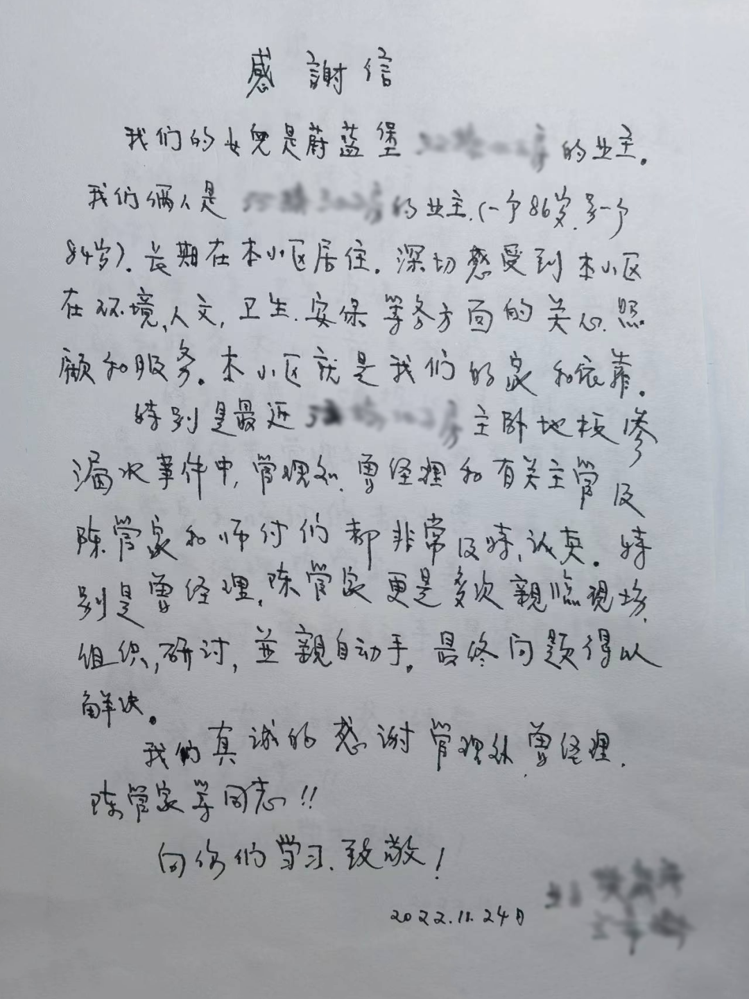 等各方的感谢信