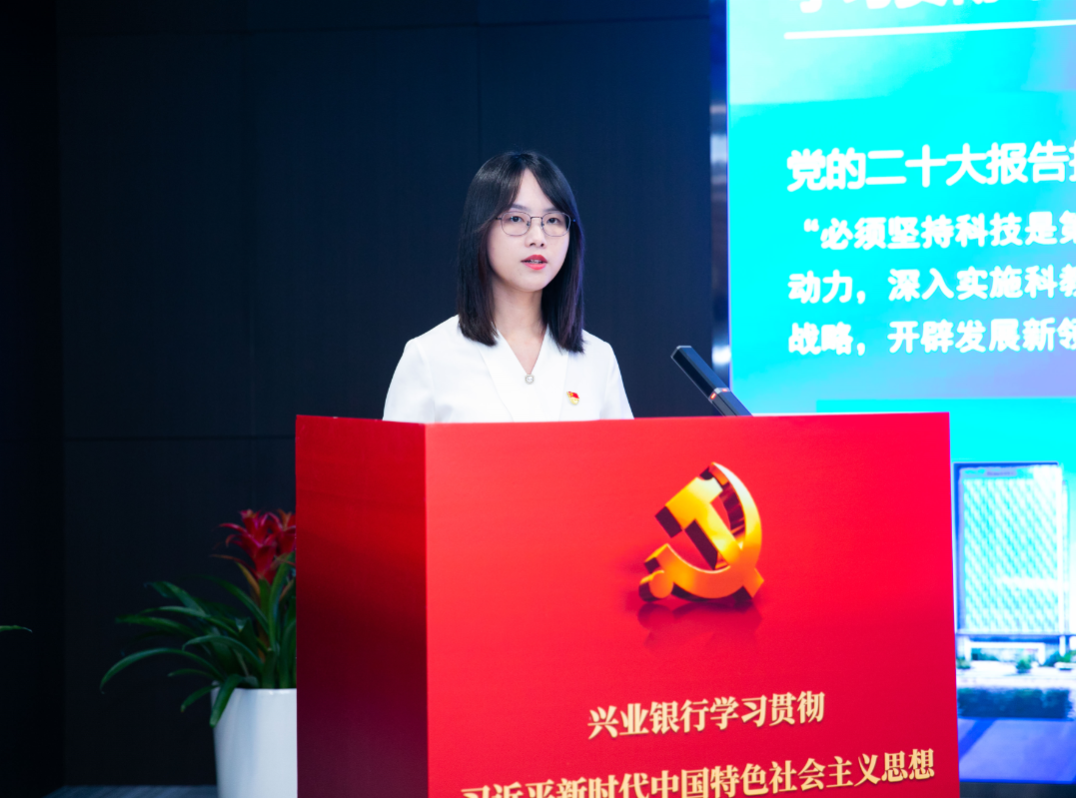 宣讲现场,兴业银行苏州分行党委委员、副行长孙晓鹏围绕高质量主题教育引领高质量发展,党建引领与业务发展深度融合的实践经验做了精彩宣讲。荣智工企智能技术(昆山)有限公司总经理徐海栋,则以“以学促干践行科技自强、红色引擎赋能企业发展”为主题,就党建助推企业科技创新、赋能科创企业发展的具体时间展开了宣讲。兴业银行主题教育宣讲团成员兴业银行普惠金融部(乡村振兴部)科创金融处副处长刘淼声、兴业银行公司金融部财富负债处副处长郑志煜则用通俗易懂的语言,深入浅出地宣讲党的创新理论,引导广大党员进一步增强能力本领,以党的创新理论武装头脑、指导实践、推动工作。今年以来,兴业银行苏州分行将科创金融、“技术流”评价体系、数字化转型作为三个重点突破方向,依托“科创中心”阵地,坚持党建引领、红色赋能,运用“创+”工作法进行“组织、产品、阵地、文化”的链接,持续推进以“技术流”为代表的科创企业服务模式,同时针对初创企业推出“人才贷”,针对成长和成熟期企业推出“投联贷”,针对专精特新企业推出“信用贷”,为科创企业分层定制金融服务。截至今年6月,苏州分行科创客户数突破1500户,科创金融贷款余额超过134亿元。在当天的活动现场,兴业银行苏州分行第五党支部与昆山高新区科技局机关党支部、阿米华晟数据科技(江苏)有限公司党支部正式签订“红色合伙人”党建共建协议,搭建党建共建“兴”桥梁,推动组织联建、党员互动、活动互联、经验共享,以党建引领释放高质量发展“红色动能”。![]()