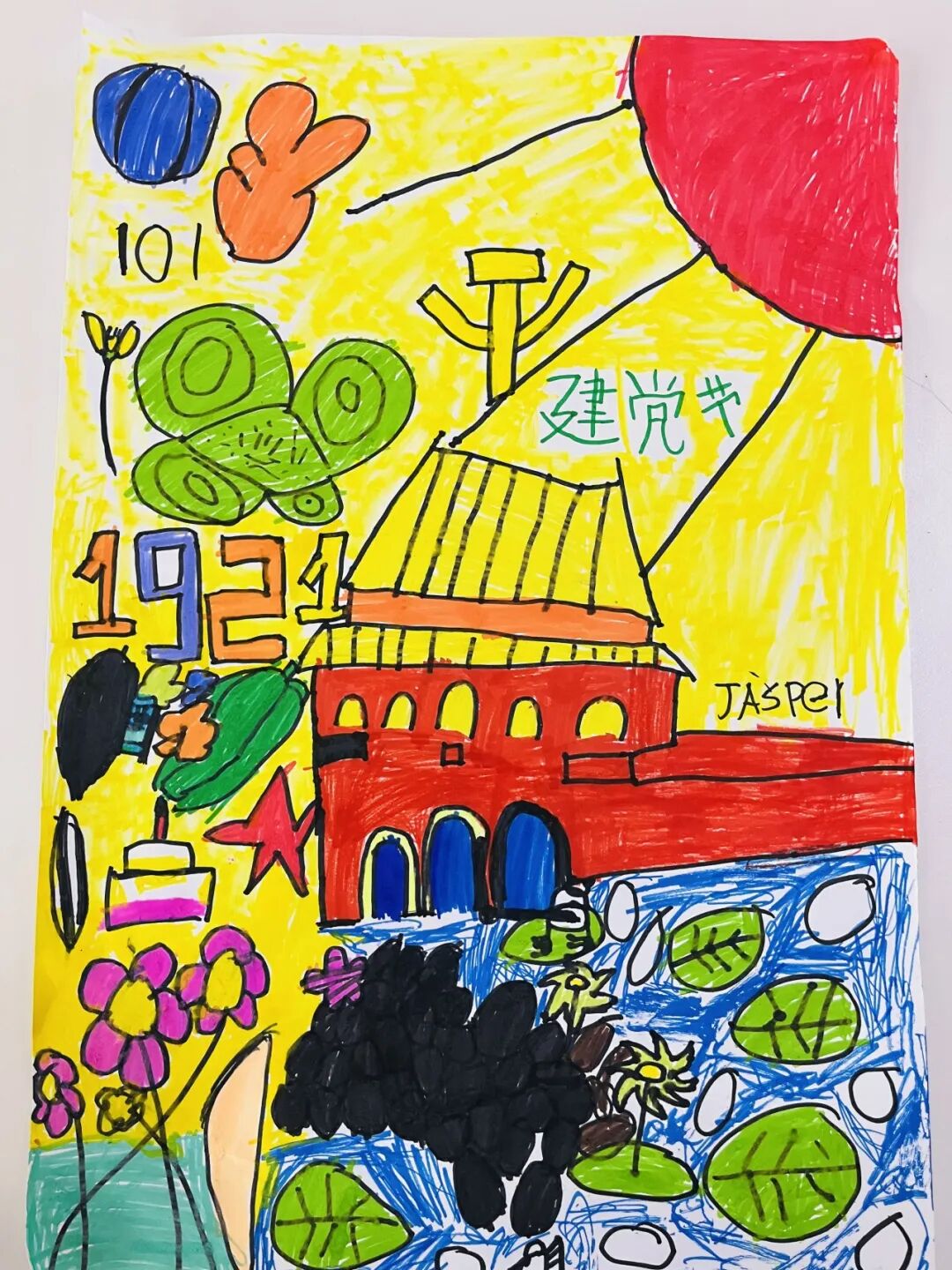 当童心与童趣相遇,滋生出无限的创意和想象。用画笔描绘美好,用艺术释放心灵,把对党和祖国的祝福,深藏在艺术的世界里,金博幼儿园的小朋友们为庆祝建党102周年献上诚挚的祝福。
