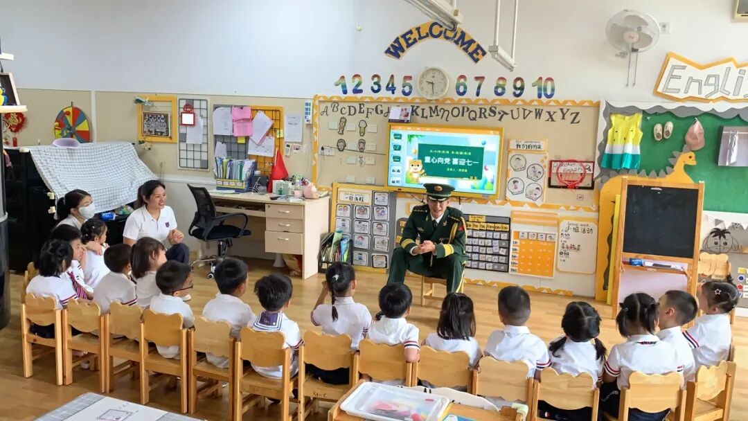 在中国共产党102岁生日来临之际,老师通过讲故事和邀请党员家长助教的形式,让幼儿了解建党节的由来及相关知识,让幼儿通过一个个党的小故事去了解中国共产党的来历,认识党旗、党徽,将百年党史融入幼儿的一日活动,让红色基因滋养颗颗童心。