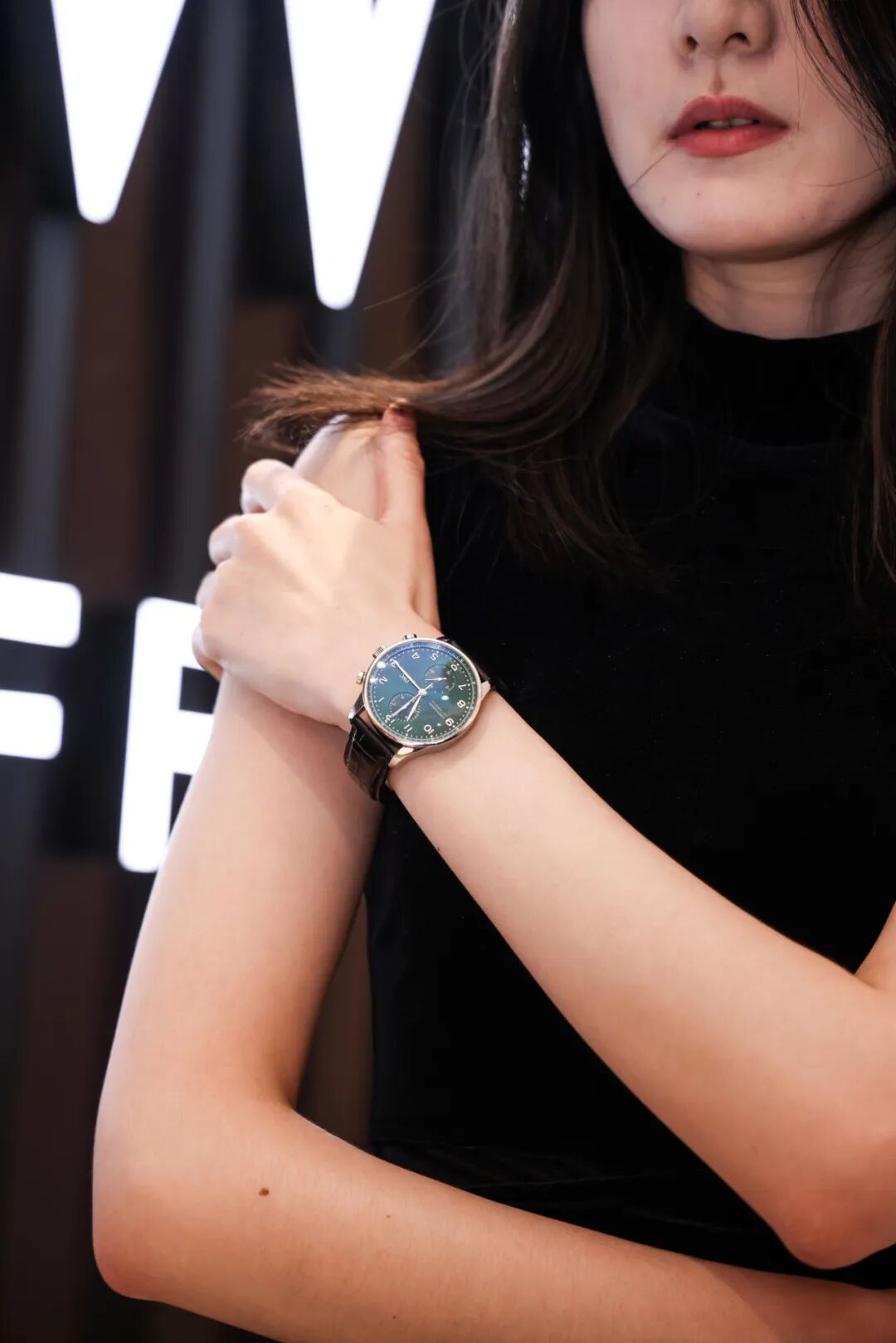 展柜及墙面橱窗里陈列了IWC葡萄牙系列、飞行员系列和柏涛菲诺等系列的经典计时腕表,直观感受IWC计时腕表的品质匠心。