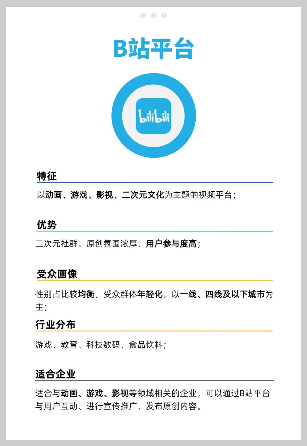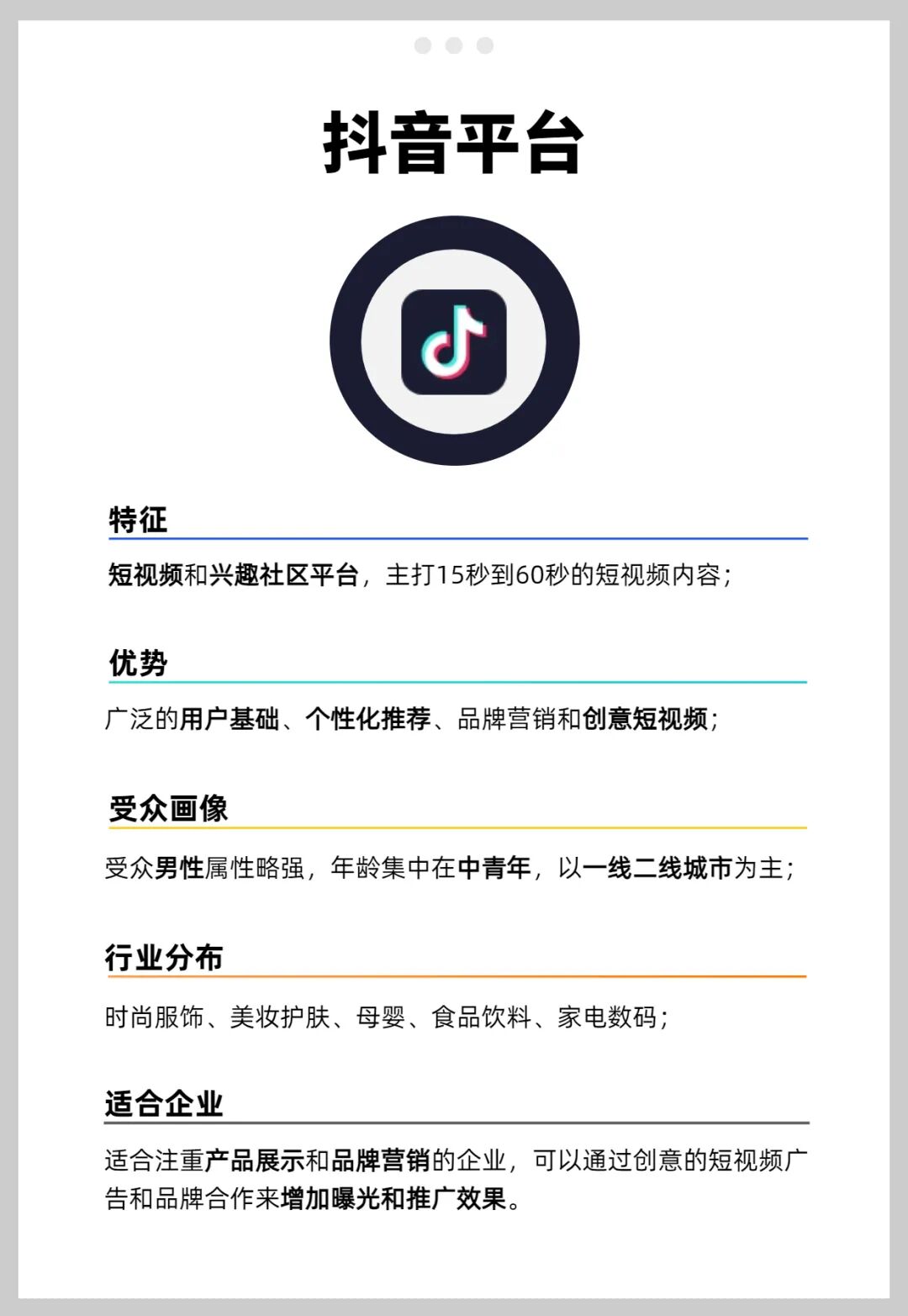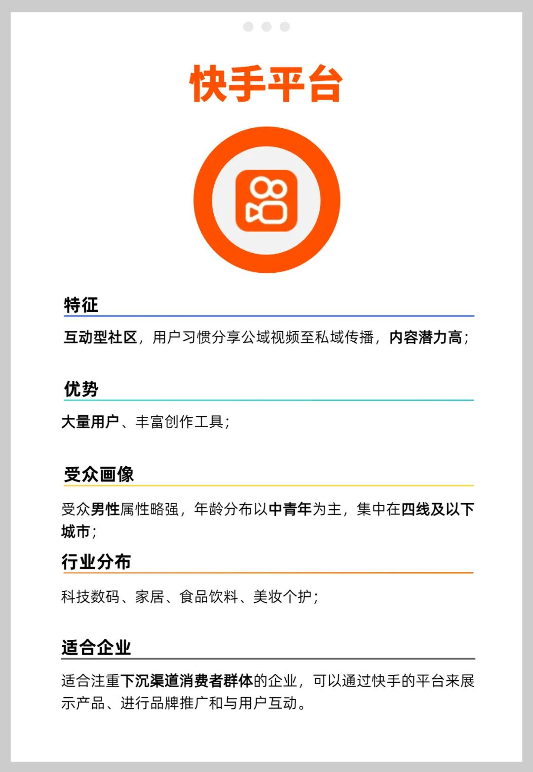 下文将从平台特征优势、受众画像、行业分布、适合企业对常见的抖音、公众号、视频号、小红书、微博、B站、快手七大主流社交媒体平台进行简单分析,帮助企业明晰这些媒体平台定位,找到适合自己的平台。