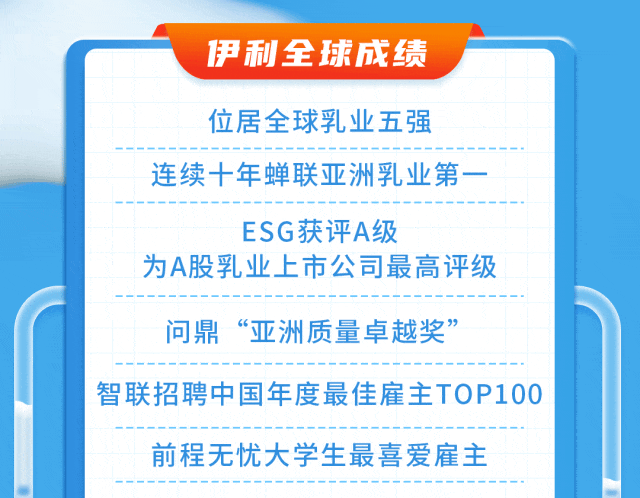 文章内容来源于公众号:伊利招聘,点此可查看原文,内容版权归相关企业所有,本网站仅供交流学习。若涉及版权问题或存在侵权情况,请及时与我们联系,我们将第一时间进行删除处理。