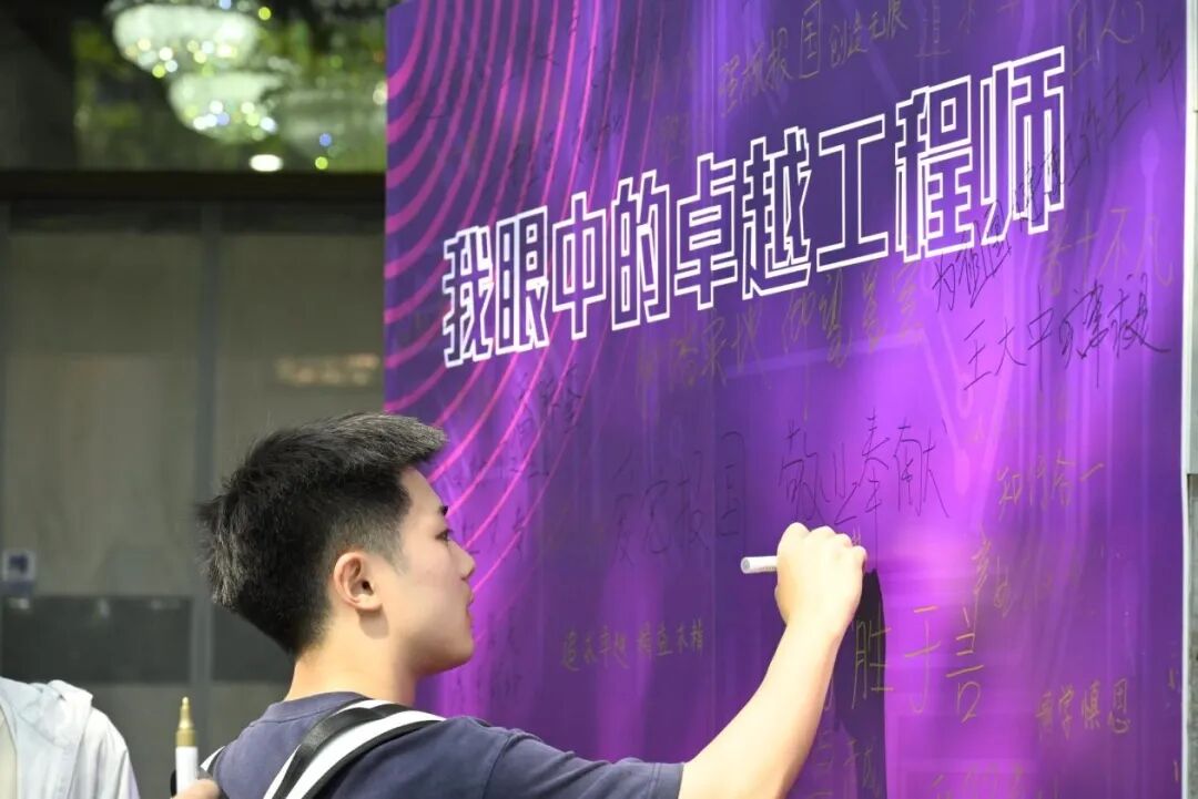 在“我眼中的卓越工程师”留言板上,同学们纷纷留言。“爱党报国,敬业奉献” “自强不息,厚德载物”“实干为本、科技兴邦”“急国所急、应国所需”“匠心筑梦、青年担当”“为国铸心、航发报国”“强核报国、创造无限”“事不避难者进”“做新时代红色工程师”,同学们纷纷在留言板上写下一句句真言挚语,也明确着自己研究生阶段的努力方向。
