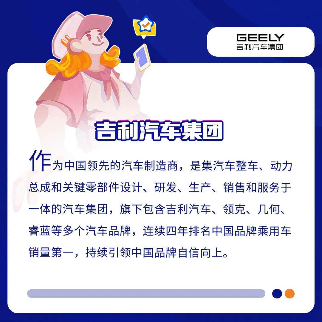 文章内容来源于公众号:吉利控股集团,点此可查看原文,内容版权归相关企业所有,本网站仅供交流学习。若涉及版权问题或存在侵权情况,请及时与我们联系,我们将第一时间进行删除处理。