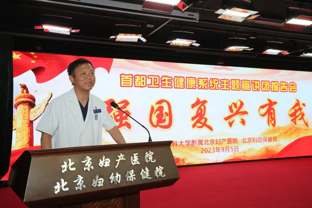 2023年9月5日下午,首都卫生健康系统“强国复兴有我”主题宣讲团走进北京妇产医院进行宣讲,展示首都广大卫生健康工作者“敬佑生命、救死扶伤、甘于奉献、大爱无疆”的精神风貌。