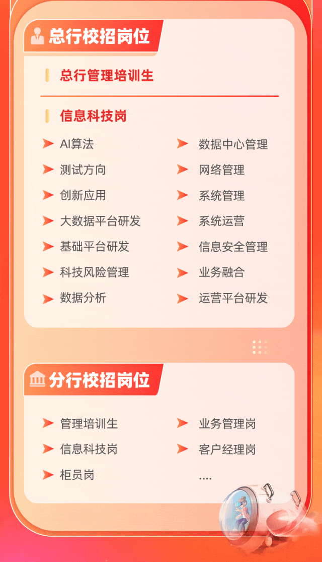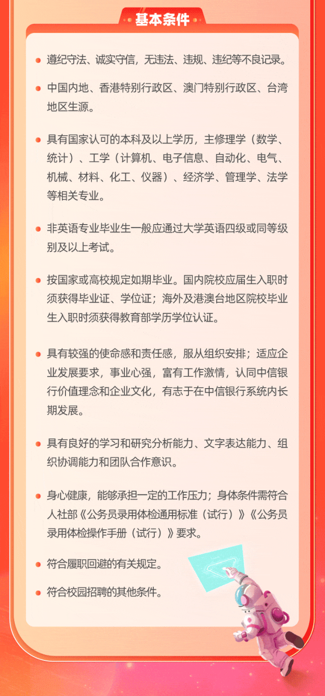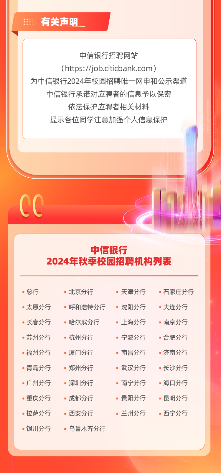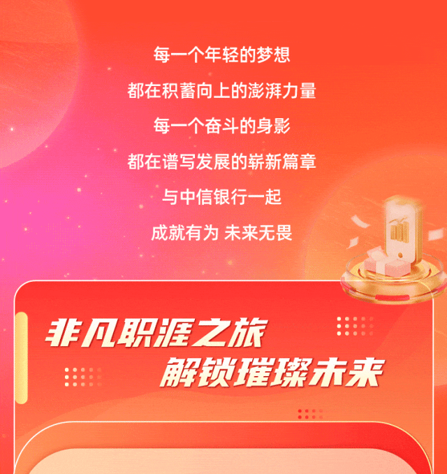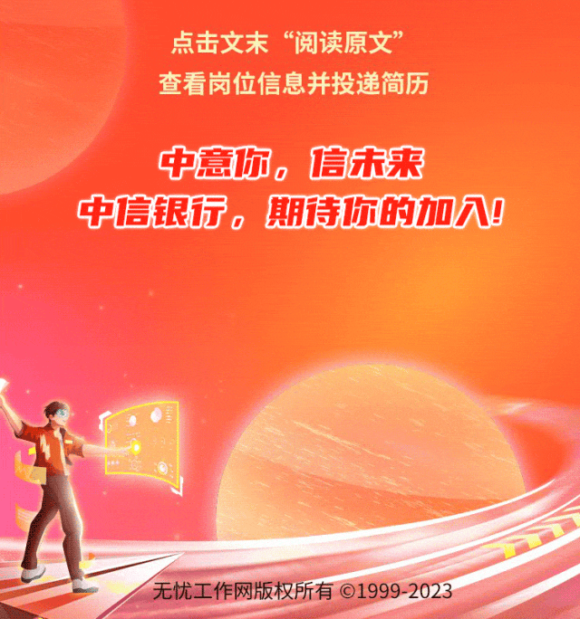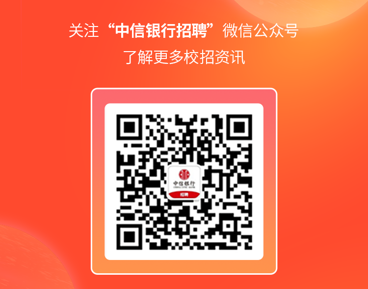文章内容来源于公众号:中信银行招聘,点此可查看原文,内容版权归相关企业所有,本网站仅供交流学习。若涉及版权问题或存在侵权情况,请及时与我们联系,我们将第一时间进行删除处理。