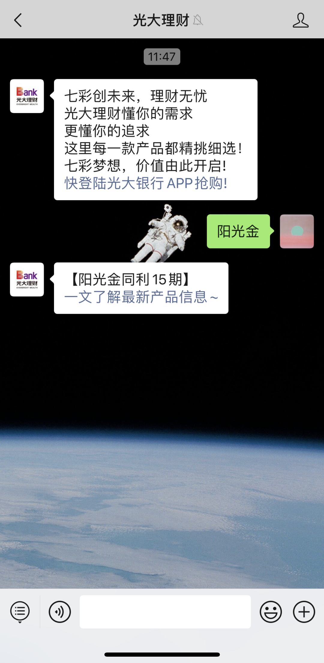 文章内容来源于公众号:光大理财,点此可查看原文,内容版权归相关企业所有,本网站仅供交流学习。若涉及版权问题或存在侵权情况,请及时与我们联系,我们将第一时间进行删除处理。