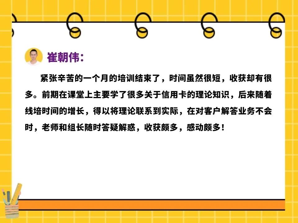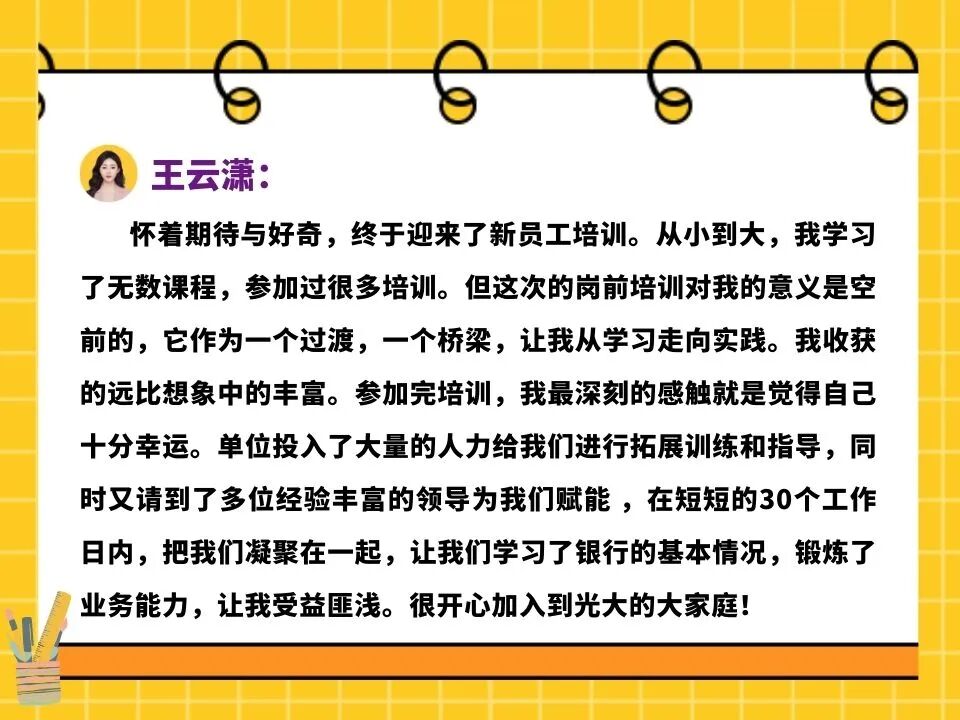 为表示对新员工的欢迎,营造职业仪式感,业务培训管理室组织开展开班典礼,会中张月经理为新员工详细介绍了远程银行中心的发展历程及发展前景,优秀代表也分享了自身的成长经验,新员工们对未来的工作充满了期待!