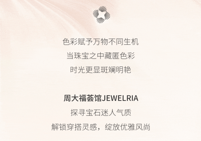 文章内容来源于公众号:周大福荟馆JEWELRIA,点此可查看原文,内容版权归相关企业所有,本网站仅供交流学习。若涉及版权问题或存在侵权情况,请及时与我们联系,我们将第一时间进行删除处理。