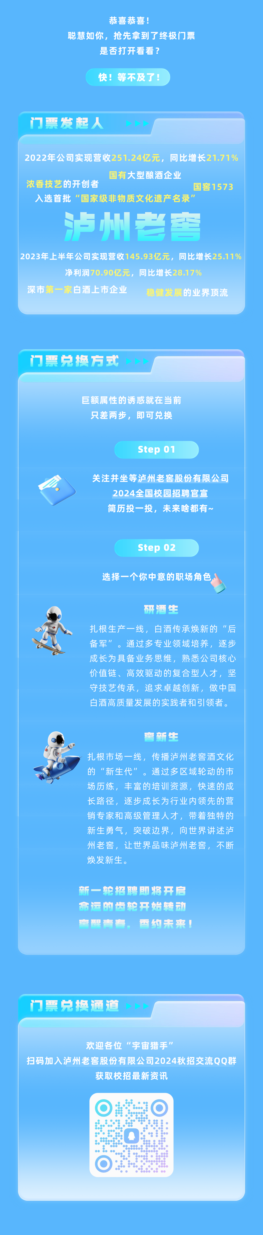 文章内容来源于公众号:泸州老窖微招聘,点此可查看原文,内容版权归相关企业所有,本网站仅供交流学习。若涉及版权问题或存在侵权情况,请及时与我们联系,我们将第一时间进行删除处理。