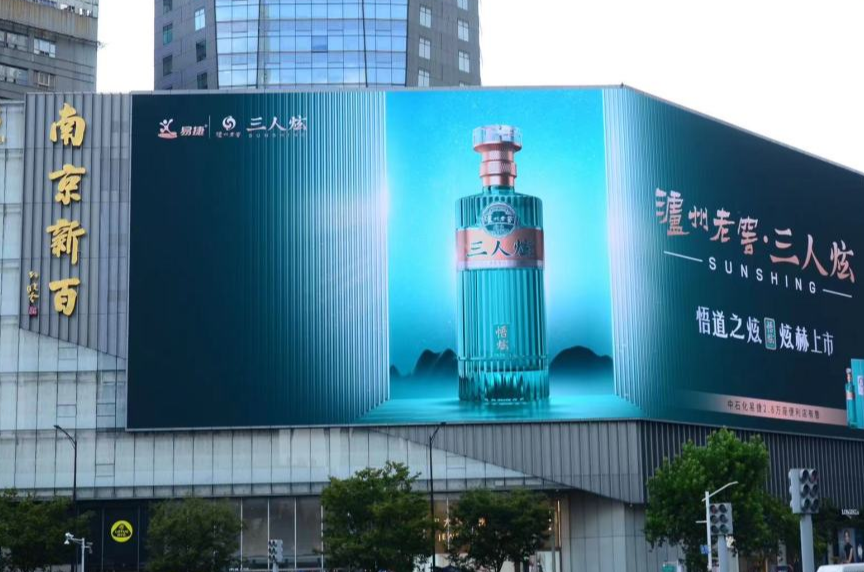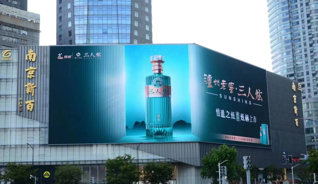 泸州老窖三人炫·悟炫亮相于新街口天时大厦,位于江苏消费力旺盛的新街口商圈核心,紧贴新街口步行街。新街口是有着近百年历史的商圈,位于南京中心区,商业密集,辐射力大,为中国商贸密集度的地区,被称为“中华一商圈”。交通便捷人车流量大,日均客流量峰值超过百万人次。全方位、精准地实现泸州老窖三人炫酒品牌形象的持续传播与渗透。作为中石化易捷唯一浓香白酒自有品牌的“泸州老窖·三人炫”,倾心打造新时代的大师好酒,品质标杆的信心与决心。