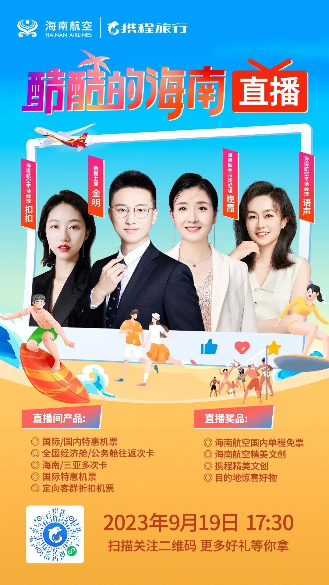今日17:30-20:30蹲守海南航空携程直播间
