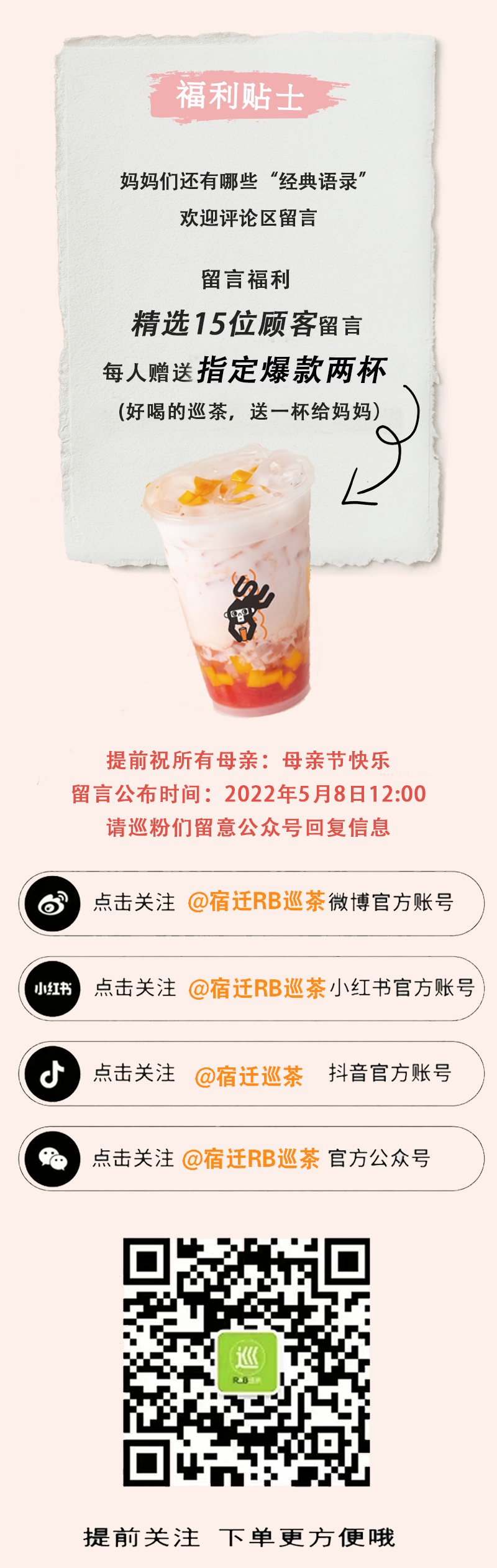 摘要:巡茶“母亲节特辑”内有暖心福利,等你领取哦