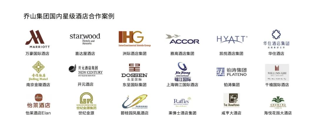 乔山作为专业健身整体解决方案的供应商,有志于与酒店行业精诚合作,传递多元化的健康服务,在酒店行业拥有良好的口碑。过去几年,乔山与众多国内外星级酒店品牌合作,为商务人士和休闲旅行者提供形式多样的专业健身服务,以提升酒店住宿的服务标准。