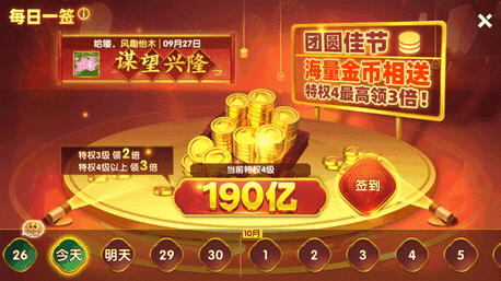 月满中秋送吉祥,福利签到海量金币豪情奉上!