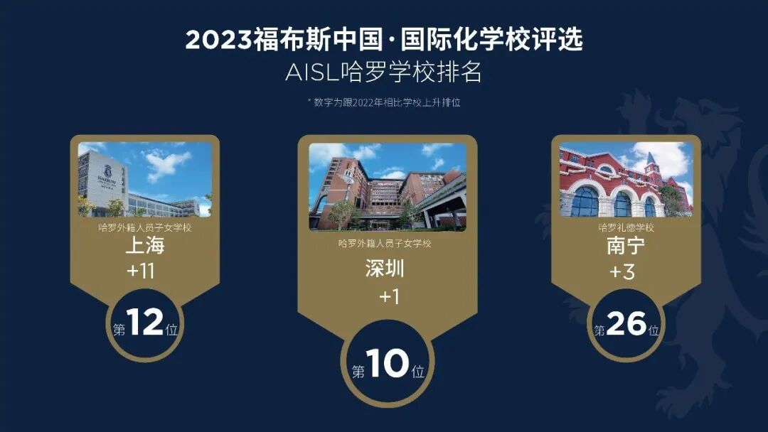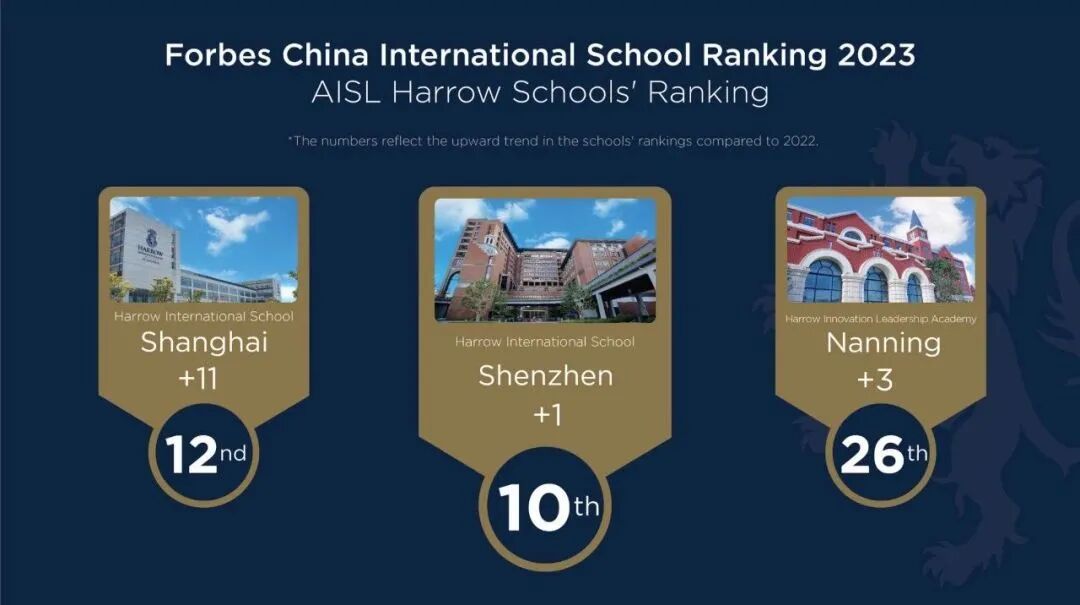 以福布斯榜单为例,2023年AISL哈罗多个校区入选,排名均有攀升: