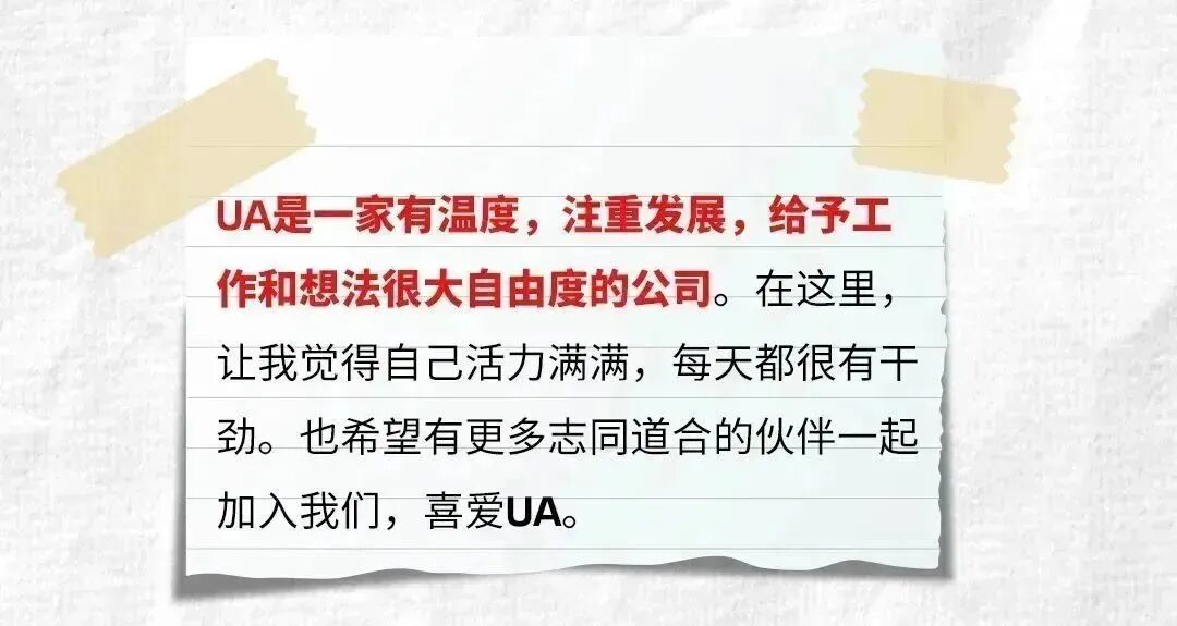文章内容来源于公众号:Under Armour安德玛招聘,点此可查看原文,内容版权归相关企业所有,本网站仅供交流学习。若涉及版权问题或存在侵权情况,请及时与我们联系,我们将第一时间进行删除处理。