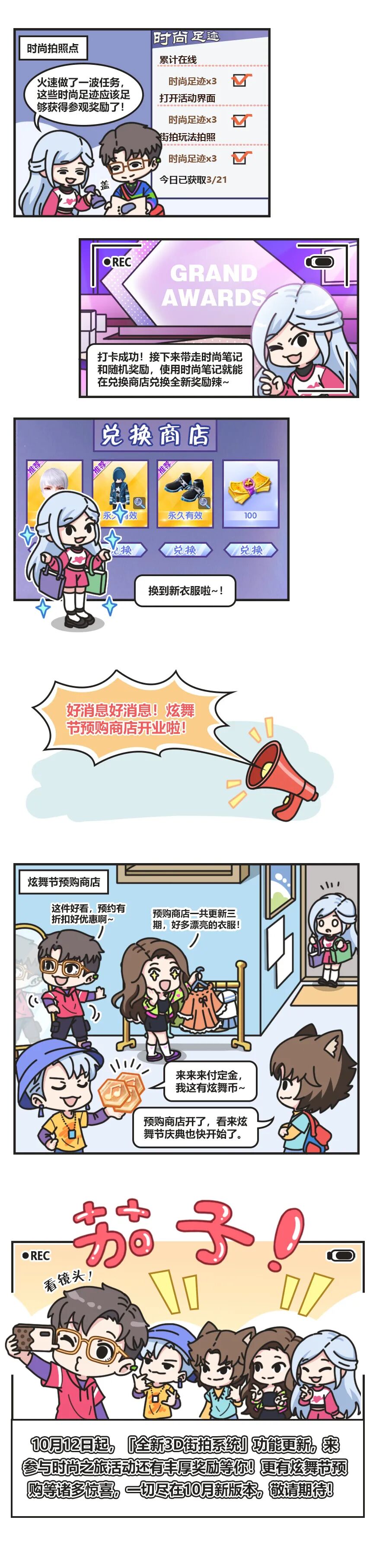 全新的拍照系统,还有系列福利,炫舞节预购商店...这次的10月新版本真的太多惊喜啦!肉肉掐指一算,距离炫舞节庆典也不远咯~