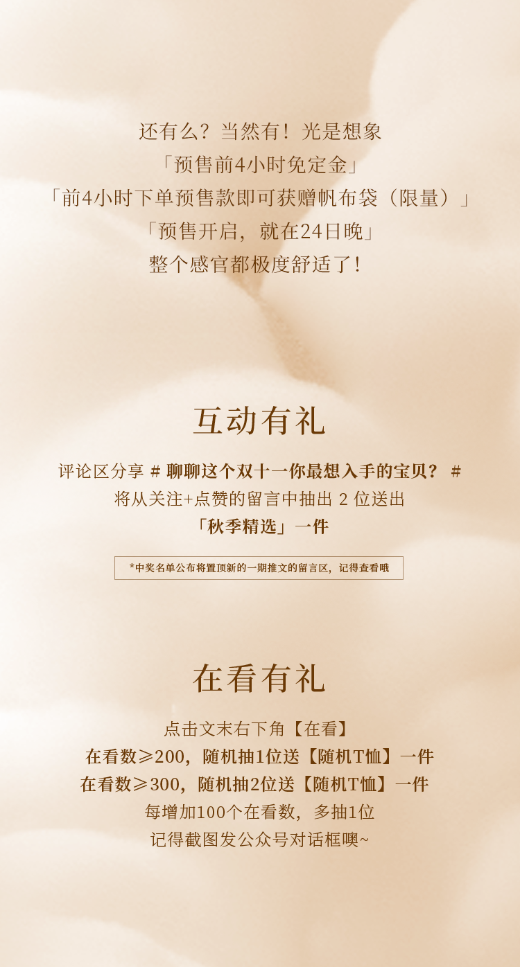 摘要:24日晚20点,茵曼双11预售舒适开启
