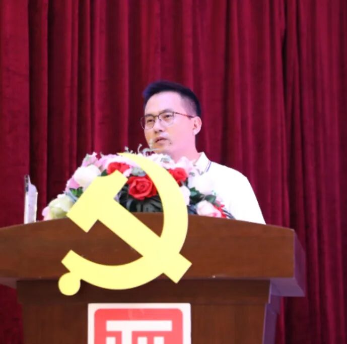 韩玉波书记首先向受到表彰的先进集体和先进个人表示热烈祝贺,向奋斗在公司各条战线的广大党员职工致以节日问候,他强调公司全体党员应紧紧围绕在党中央的周围 ,贯彻党落实党二十大和历次全会精神、并结合公司发展重点工作,不断增强党委的号召力、凝聚力、战斗力,以实际行动践行共产党员的先进性。他最后衷心的祝福我们伟大的政党基业长青,祝愿我们公司业绩蒸蒸日上,他将与各位党员同志一道为我们公司高质量发展而努力奋斗。