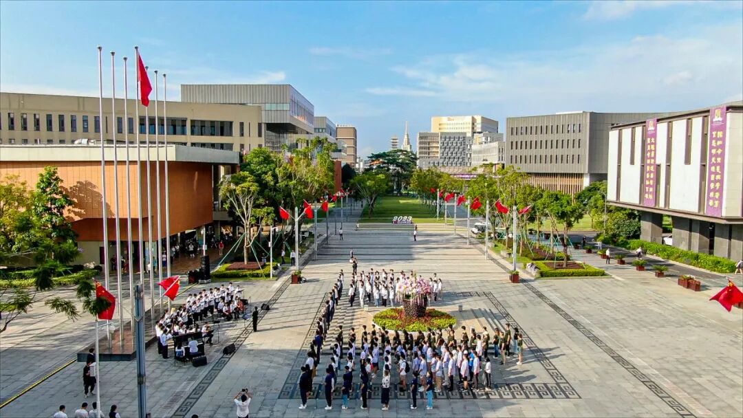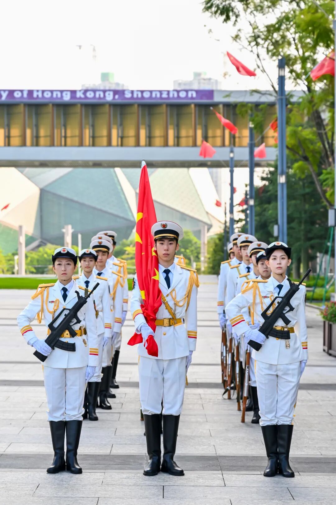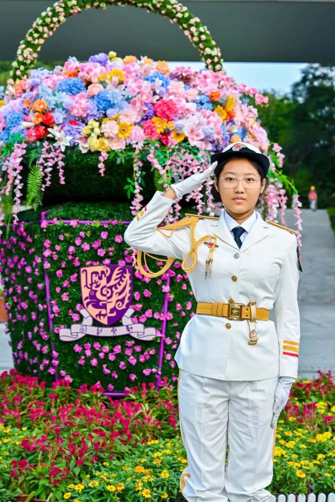 “云天收夏色,木叶动秋生。”2023年9月28日早上,当细碎的晨光投入大地时,香港中文大学(深圳)新南门升旗台边有一道靓丽的风景线:校国旗护卫队身着白衣正装,手握标枪,目光坚毅。为庆祝新中国七十四周年华诞,香港中文大学(深圳)的师生代表齐聚于此,怀赤诚之心共敬这五星红旗升起的庄严时刻。