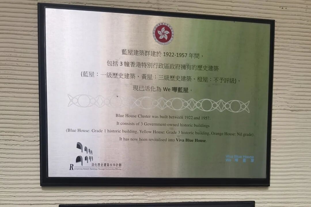 蓝屋建筑群包括三栋古董级建筑,分别是蓝屋、橙屋与黄屋。站在蓝屋的公共空间,一个车站牌样式的“蓝屋”地标十分吸引眼球。走进居民楼,处处都有居民自行DIY的创意装饰物,材料包括但不限于废旧的轮胎、挂篮等等。May婆婆自豪地向大家介绍“好邻居计划”——社区居民共同遵守,自觉为他人营造一个温馨、友善的生活环境,邻里之间情感联系使得生活的氛围与香港整体的风格大为不同。尽管楼宇并非富丽堂皇,但每个角落都向来访者展示这里的和谐、融洽氛围。