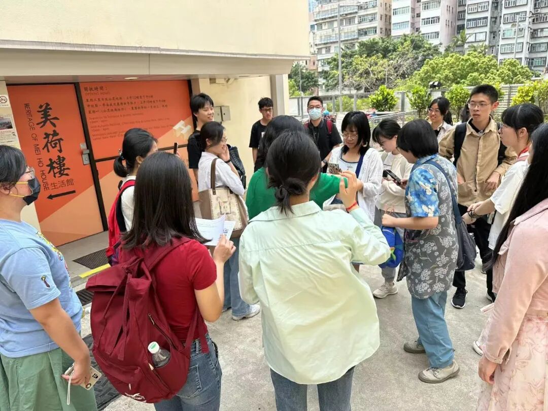 本次“访学团”由23名对社会创新、可持续发展议题具备好奇心与探索热情的同学组成,由学生事务处Shuki、Charlotte老师亦带队出行,先后参访了美荷楼生活馆与深水埗街道、蓝屋建筑群以及维多利亚公园的长春社流动非遗专车。