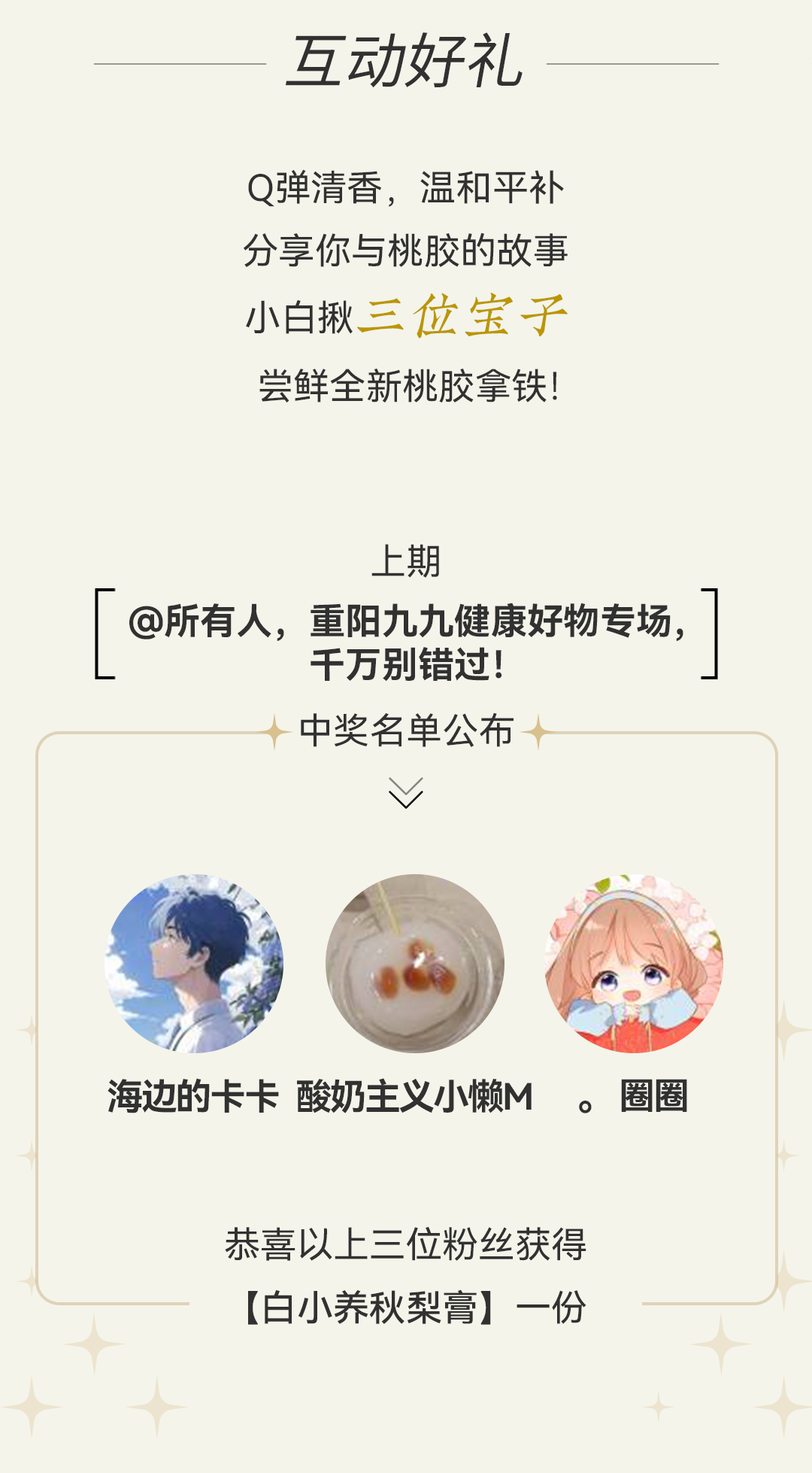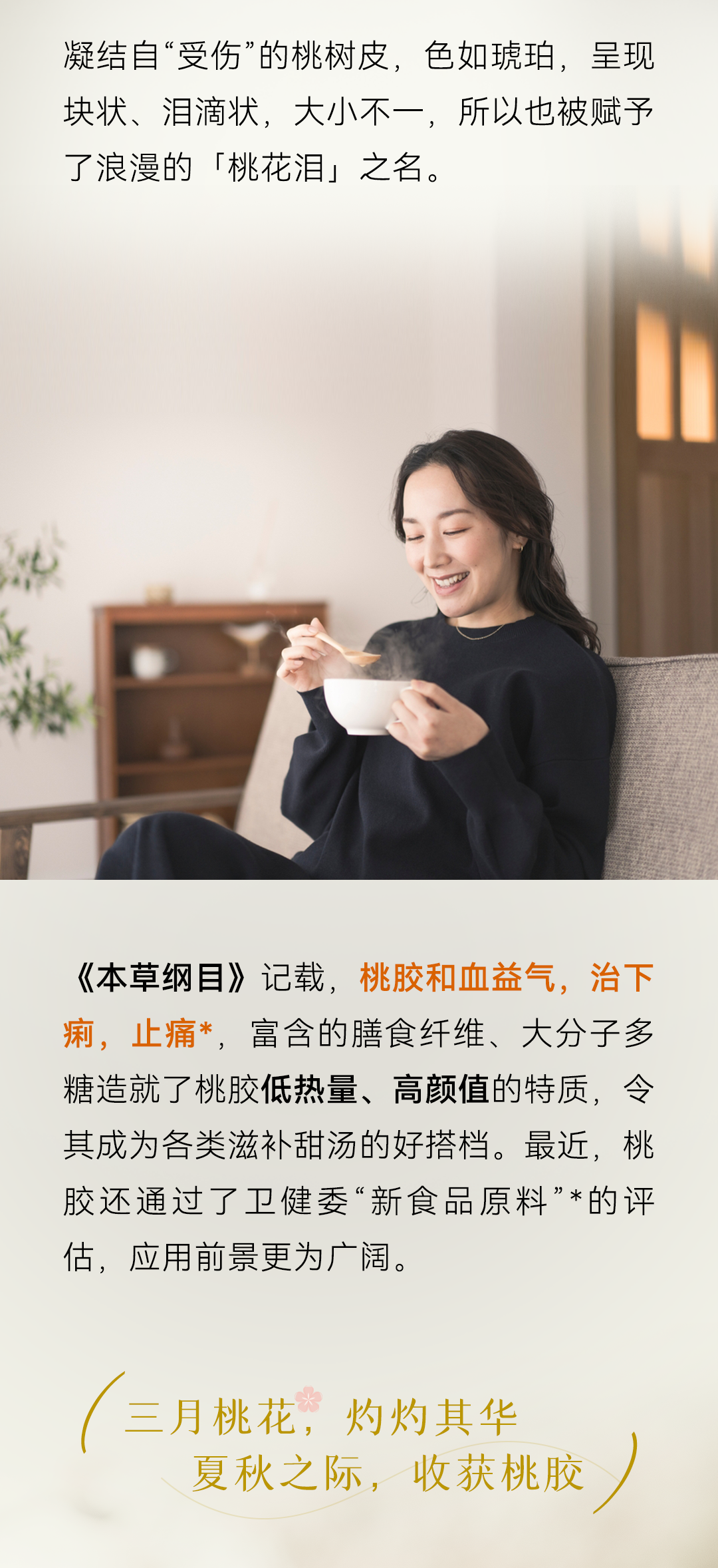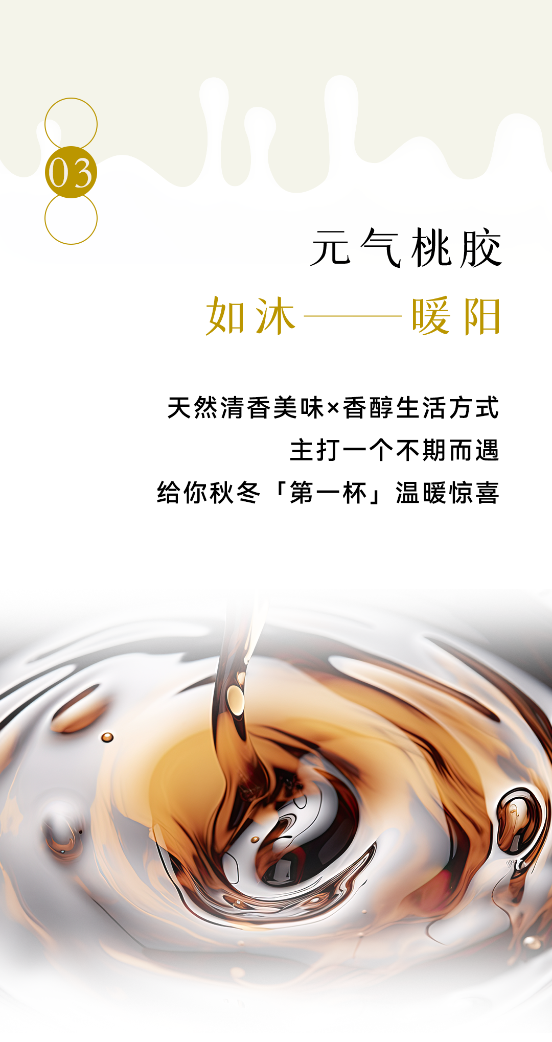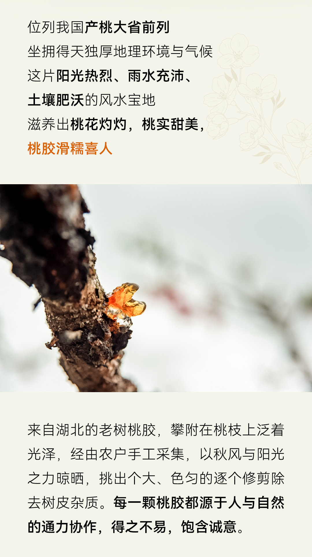 霜天冷,风细细,触疏窗、闪闪灯摇曳。点击「桃」离凉燥01 抵御寒风温暖甜润霜气横秋,寒风凛凛「养生之魂」霎时觉醒!用一碗桃胶炖奶暖暖身晶莹琥珀的桃胶安静沉在碗底汤匙掀起牛奶甜香的波澜弹糯软滑,气微清香是秋冬季节最不想错过的暖心治愈02 桃胶润养 生津润肠这一颗颗晶莹「桃花泪」究竟源自何处?桃胶味甘苦,性平,无毒在扶霞·邓洛普《鱼米之乡》里,桃胶是「桃树在特定季节以呼吸凝结的精华」。桃胶,蔷薇科李属植物桃树(Prunus persica(L.)Batsch)分泌的胶状物,经采摘、分选、晾晒、清洗、干燥后制得。凝结自“受伤”的桃树皮,色如琥珀,呈现块状、泪滴状,大小不一,所以也被赋予了浪漫的「桃花泪」之名。《本草纲目》记载,桃胶和血益气,治下痢,止痛,富含的膳食纤维、大分子多糖造就了桃胶低热量、高颜值的特质,令其成为各类滋补甜汤的好搭档。最近,桃胶还通过了卫健委“新食品原料”*的评估,食品安全更具保障。三月桃花,灼灼其华夏秋之际,收获桃胶湖北位列我国产桃大省前列坐拥得天独厚地理环境与气候这片阳光热烈、雨水充沛、土壤肥沃的风水宝地滋养出桃花灼灼,桃实甜美,桃胶滑糯喜人来自湖北的老树桃胶,攀附在桃枝上泛着光泽,经由农户手工采集,以秋风与阳光之力晾晒,挑出个大、色匀的逐个修剪除去树皮杂质。每一颗桃胶都源于人与自然的通力协作,得之不易,饱含诚意。03元气桃胶 焕颜秋冬库迪咖啡甄选湖北优质产区老树桃胶生长环境原生态、无污染颗颗饱满,纯净无杂晶莹剔透,色如琥珀与米乳、生酪融合呈送这一季的甜香润养其一「桃胶酿米乳拿铁」丹桂香气邂逅谷物麦香馥郁纯粹香气中感受植物力量更有软糯桃胶注入滋补营养“养气”满溢,温润暖冬其二「桃胶生酪拿铁」颗颗Q弹饱满的桃胶跃入绵密丝滑的生酪拿铁芝士蛋糕般香甜气息绵密展开大口嚼到养颜好营养即刻前往库迪咖啡公众号尝鲜