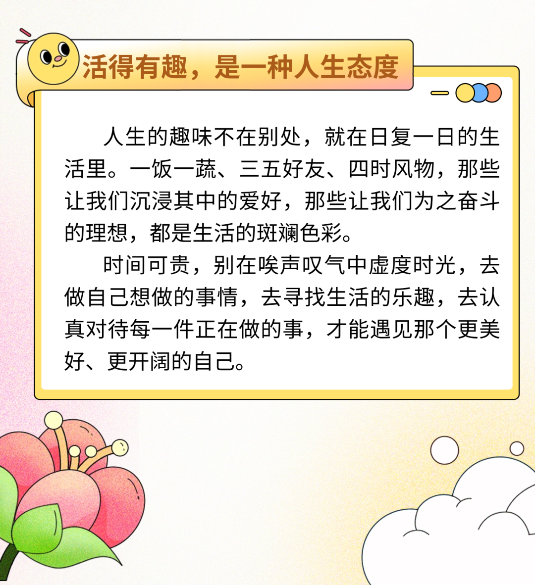 去做自己想做的事情,去寻找生活的乐趣,去认真对待每一件正在做的事,才能遇见那个更美好、更开阔的自己。