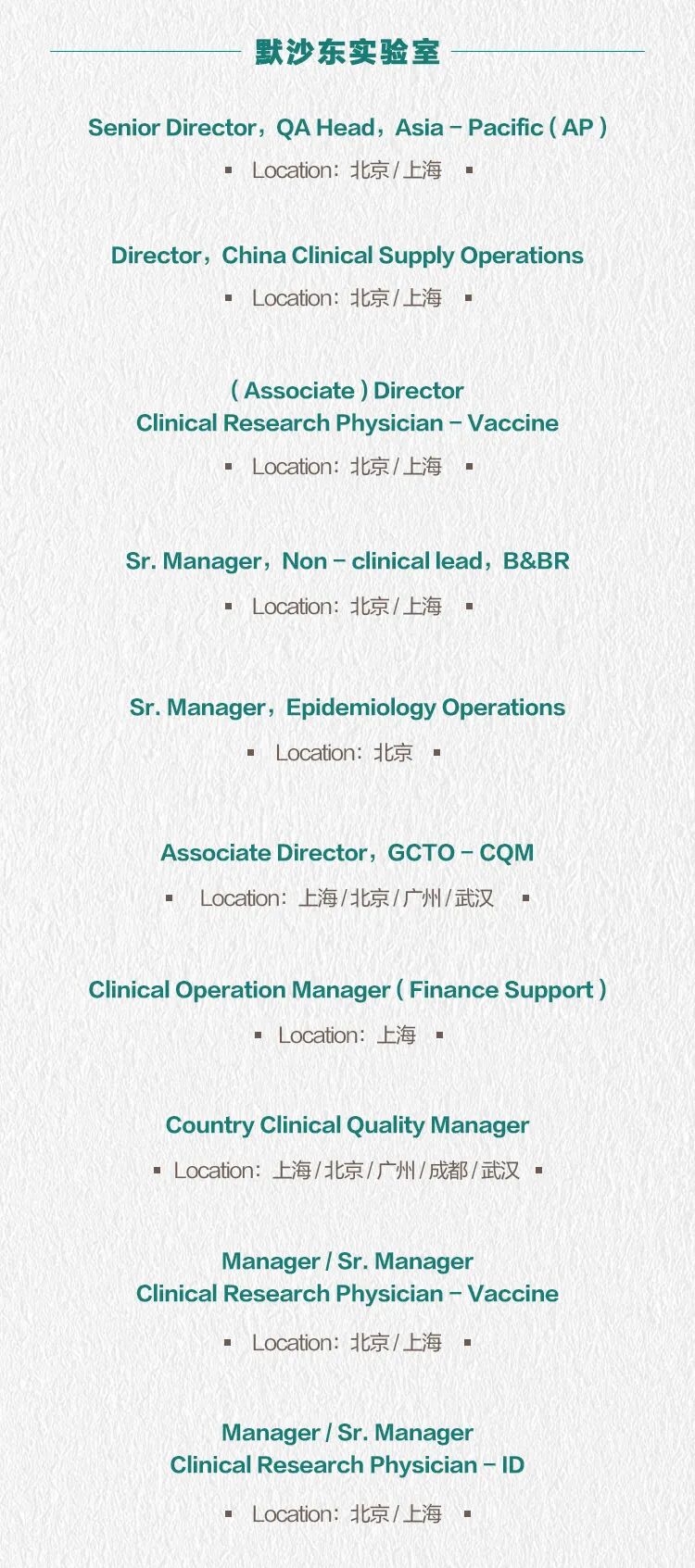 文章内容来源于公众号:默沙东招聘,点此可查看原文,内容版权归相关企业所有,本网站仅供交流学习。若涉及版权问题或存在侵权情况,请及时与我们联系,我们将第一时间进行删除处理。