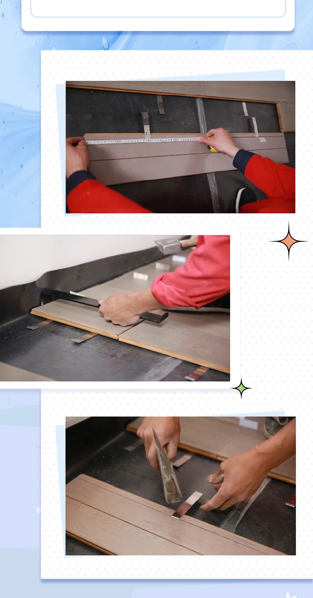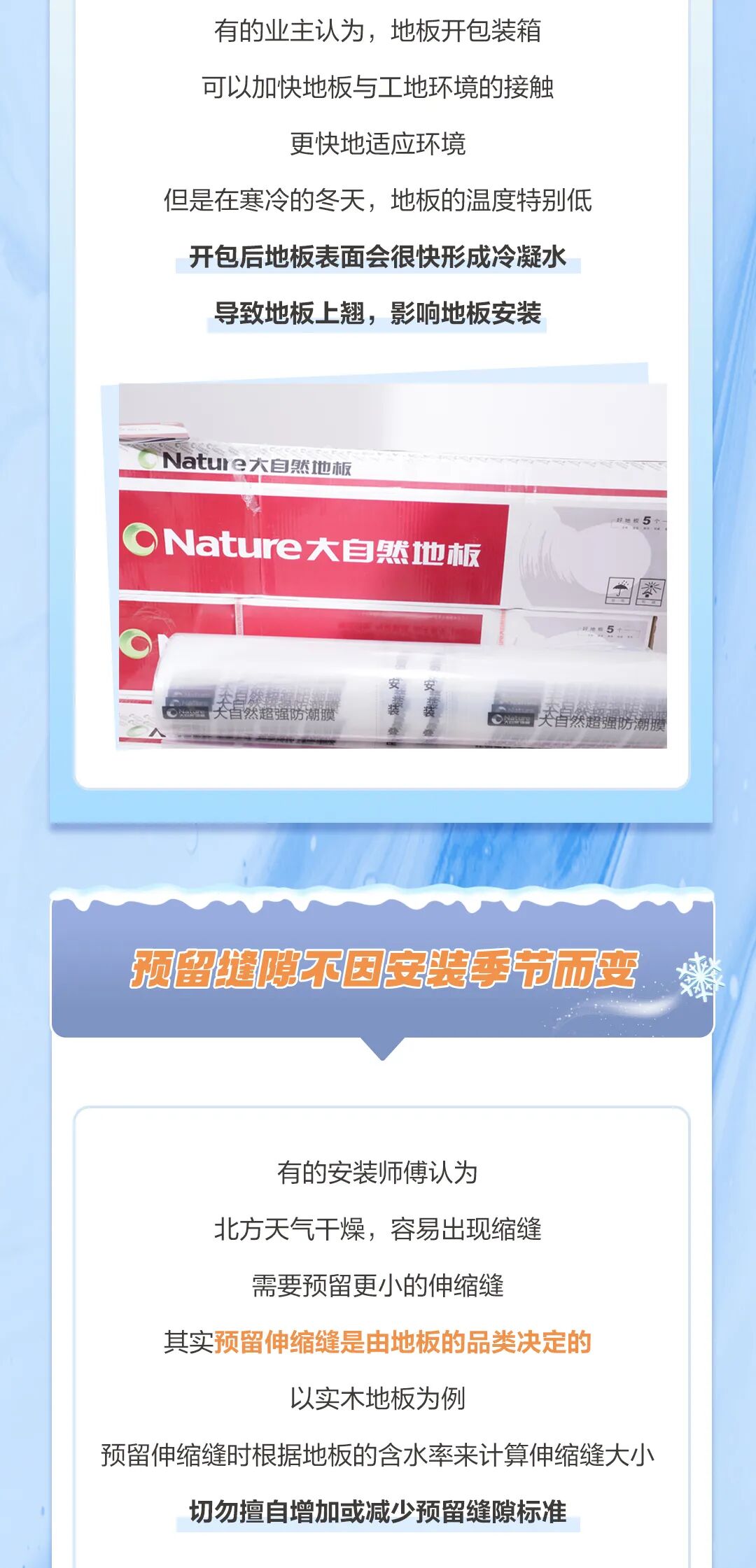 此外,大自然地板还研发出获得国家专利的“钢扣固装方案”,以特制合金钢扣提供锁力连接地板,再通过测算各地环境变化数据,匹配以合适的安装方案,有效解决地板容易变形和膨胀收缩的问题。