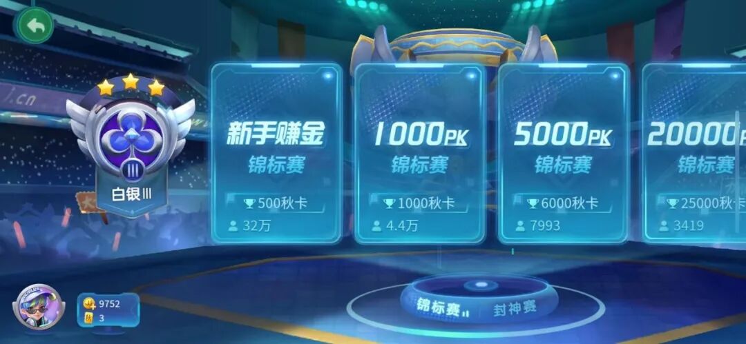在不同规格的锦标赛(比赛场)中,我们可以通过“排名”看到本周夺冠次数名列前茅的玩家与本地区的高手!在“荣誉室”中,陈列着你获得前三名的历史奖杯。好羡慕!能不能给大金牙瞅瞅你的最佳战绩?