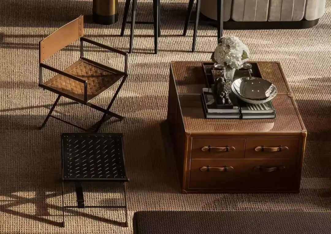 早在前几年推出的家居系列,Bottega Veneta就向我们展示了如何用动态的工艺去演绎家居生活场景中的家具。这款总监椅,座椅部分由Intrecciato编织皮革制成的总监椅,其他接触面均为皮革饰面,整体设计糅合了简单又严谨的功能主义和优雅的审美时尚,展现出干练而纯熟的服装架构思维。