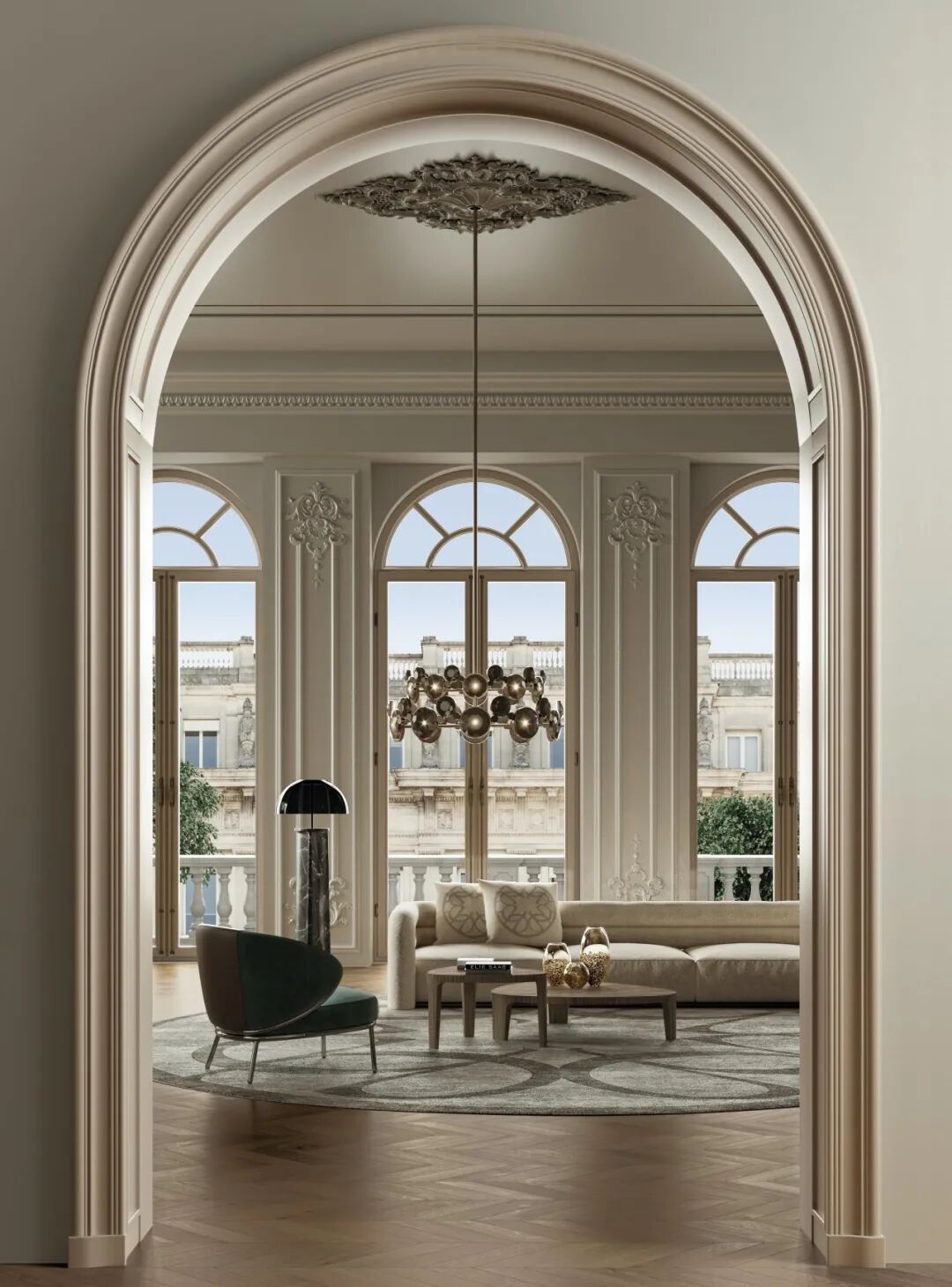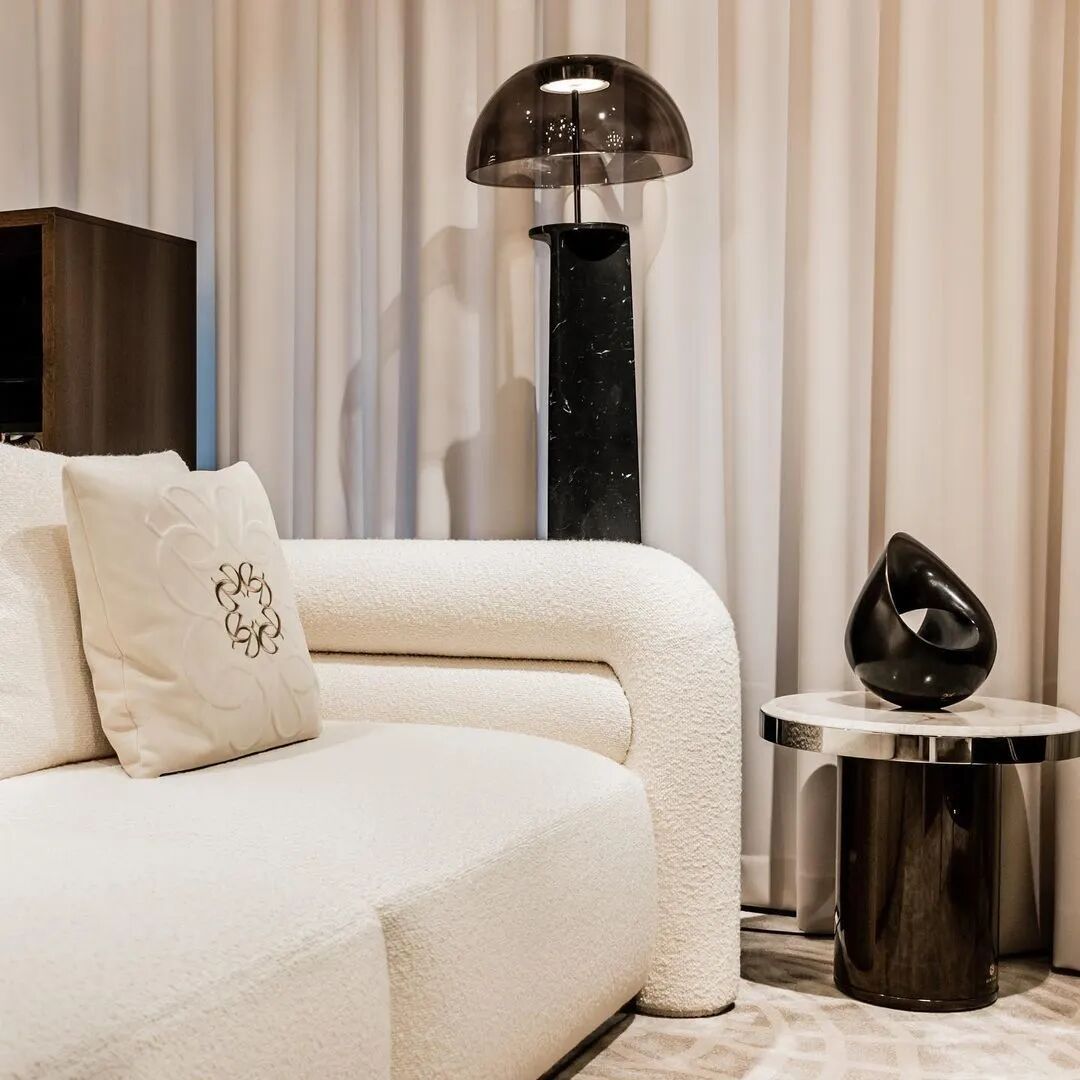 其实,这种以月相为意向的设计表达,在今年的家居产品中已有明显的趋势。一如Elie Saab 最新的家居系列,珠宝般闪耀的Sapphire黄铜吊灯、半圆形的落地灯Tiara、弧形的Halo 沙发、圆形的地毯,如圆月的元素在家居新品中早已略显“端倪”,迷人的曲线,平滑、圆润、优美,给人带来优美感和向心感,满足人们在感官上对美的想象。