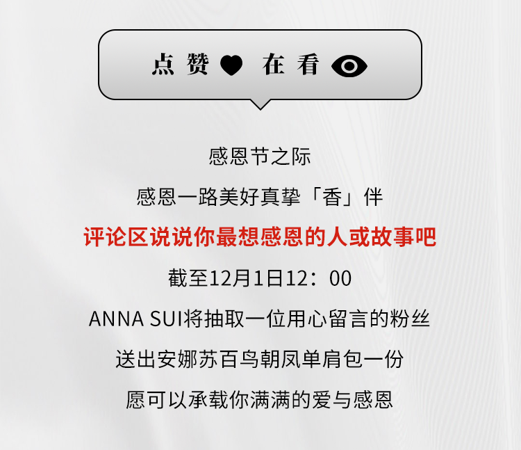 文章内容来源于公众号:ANNASUI安娜苏,点此可查看原文,内容版权归相关企业所有,本网站仅供交流学习。若涉及版权问题或存在侵权情况,请及时与我们联系,我们将第一时间进行删除处理。