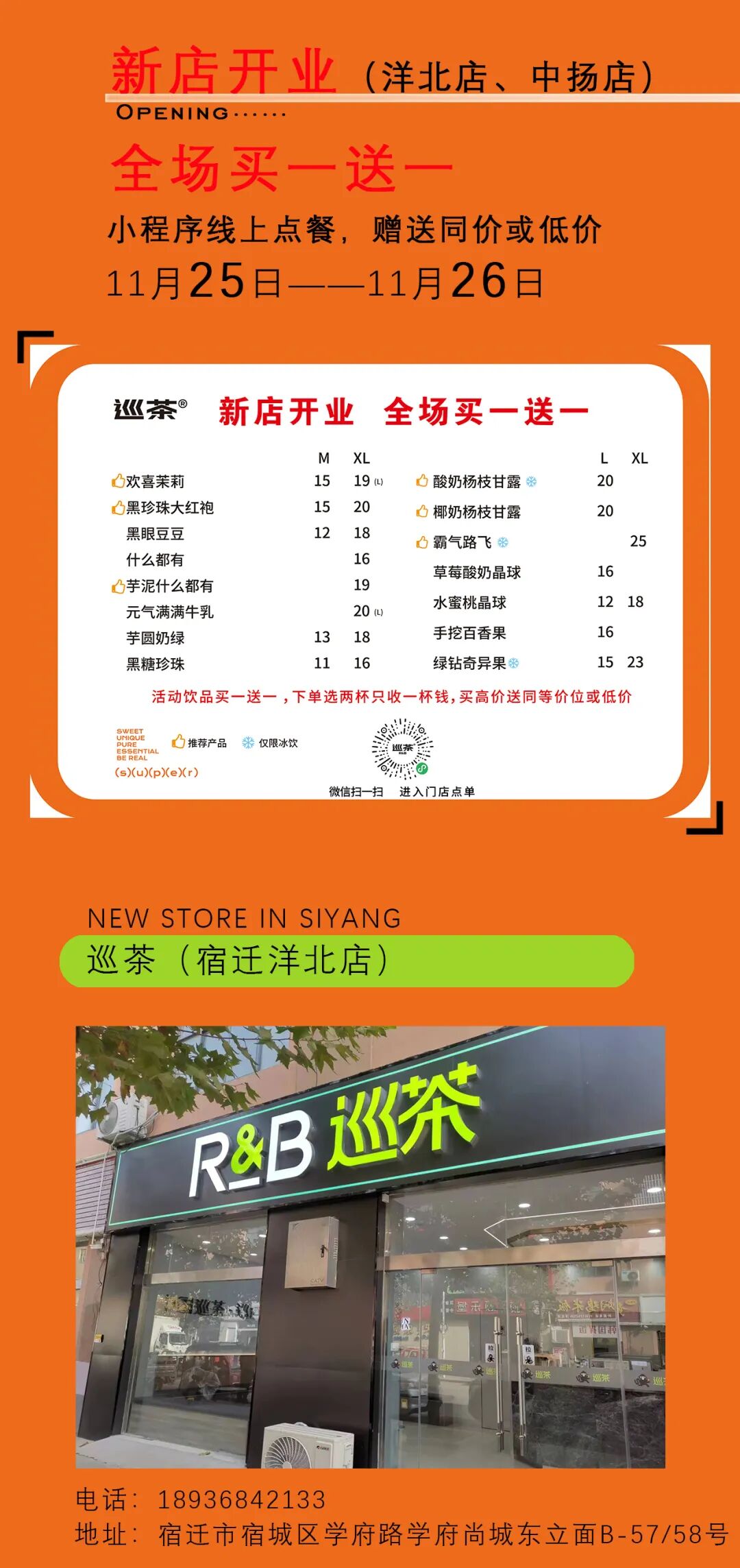 摘要:11月25——26日,宿迁巡茶洋北店、中扬店,双店盛大开业!更有钜惠活动,等你参与~