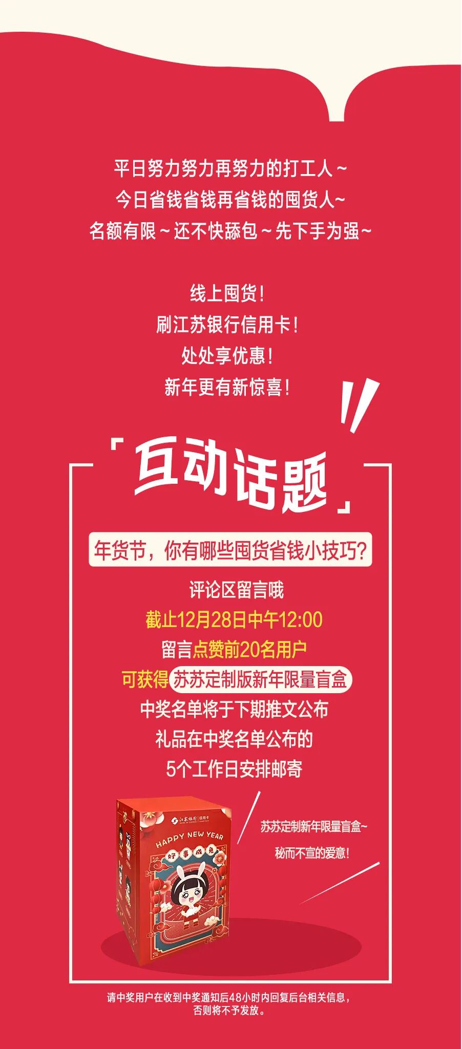 文章内容来源于公众号:江苏银行信用卡,点此可查看原文,内容版权归相关企业所有,本网站仅供交流学习。若涉及版权问题或存在侵权情况,请及时与我们联系,我们将第一时间进行删除处理。