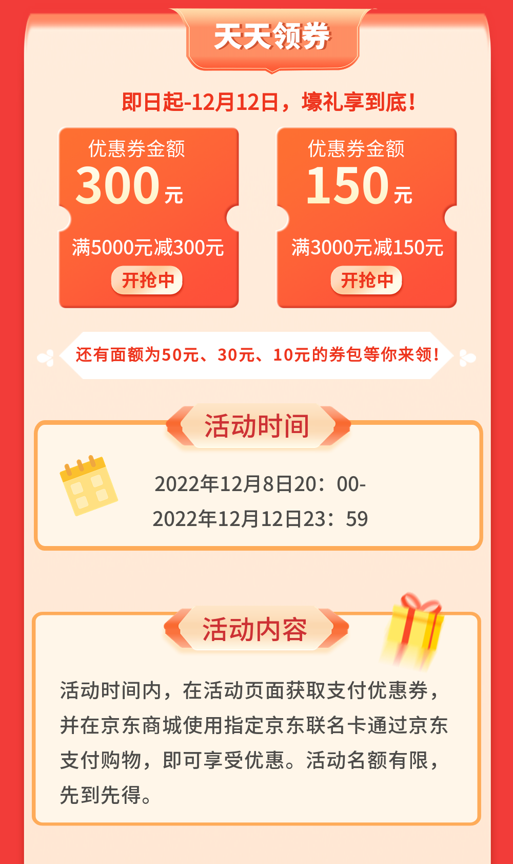 4. 优惠券有效期为领取之日后15天,过期失效,持卡人需提前激活卡片并绑定京东支付。