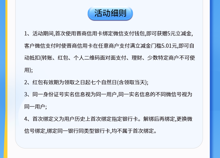 文章内容来源于公众号:晋商银行信用卡,点此可查看原文,内容版权归相关企业所有,本网站仅供交流学习。若涉及版权问题或存在侵权情况,请及时与我们联系,我们将第一时间进行删除处理。
