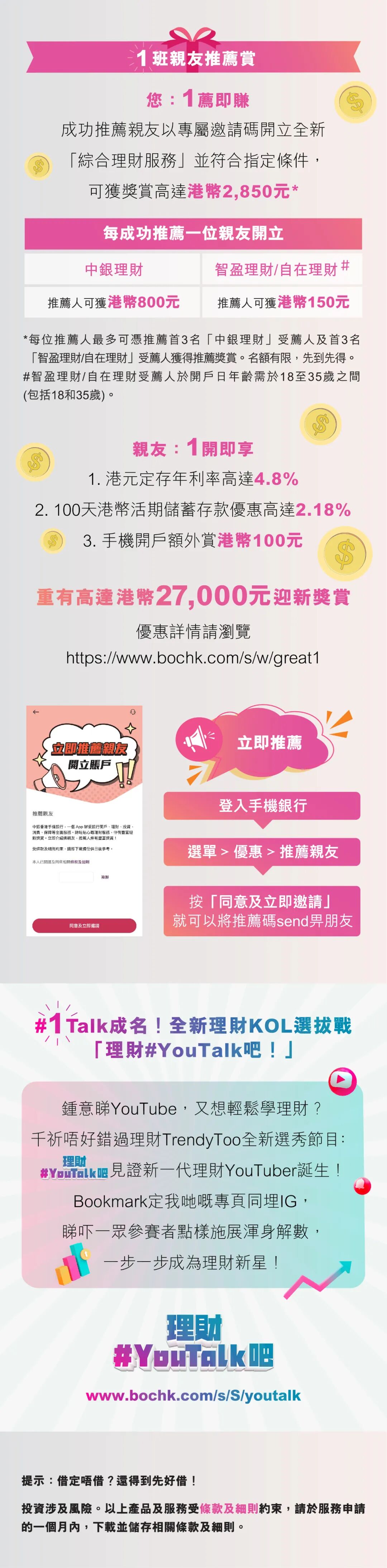 The above products, services and offers are subject to the relevant terms. For details, please refer to the relevant promotion materials or contact BOCHK branch staff.