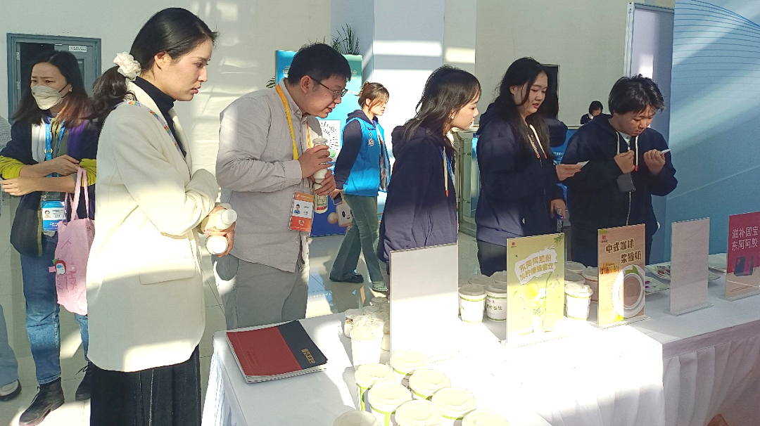 本次链博会也随处可见华润的身影。其中,怡宝是首届链博会指定用水,场馆内所有的纯净水及饮品均由怡宝提供;东阿阿胶在指定区域提供阿胶酸奶杯、复方阿胶浆撞奶、桃花姬阿胶糕、一口香酱香驴肉等创新美味的食品。