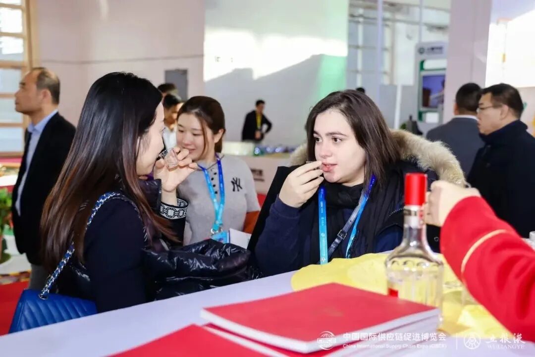 位于“绿色农业链”展区的五粮液主题展厅,系统呈现了白酒产业链盒、箱、瓶、标、盖纵深全覆盖的产业体系,全景式立体化展示了“种子到美酒”的生产生态链,“包装到物流”的产业供应链,以及国内外营销网络多维“链接世界和美”的消费与服务双向链,着力讲好五粮液一二三产业融合发展的和美之链。展厅中心集中亮相501五粮液、经典五粮液、第八代五粮液、五粮液·紫气东来等核心产品,展现五粮液以五粮美酒联结内部全产业链、链接外部和美世界的和美支撑,为中外嘉宾深入了解中国白酒产业与文化打开新窗口。