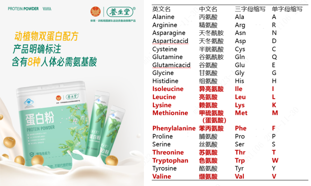 / 养生堂蛋白粉含8种人体必需氨基酸