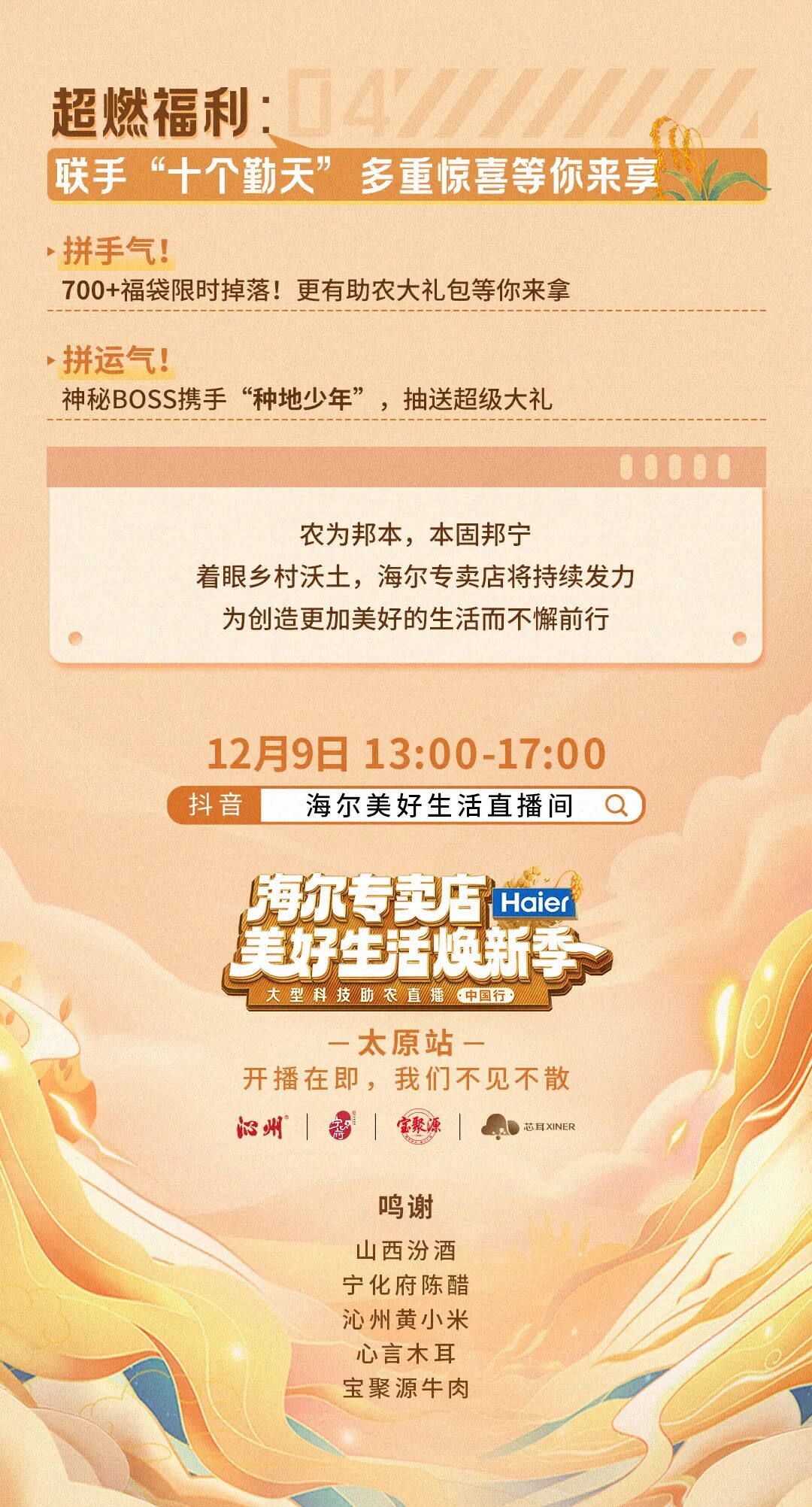 摘要:以智慧科技守护美好 助乡村好物“出圈” \x0a12月9日 抖音海尔美好生活直播间 与你相约