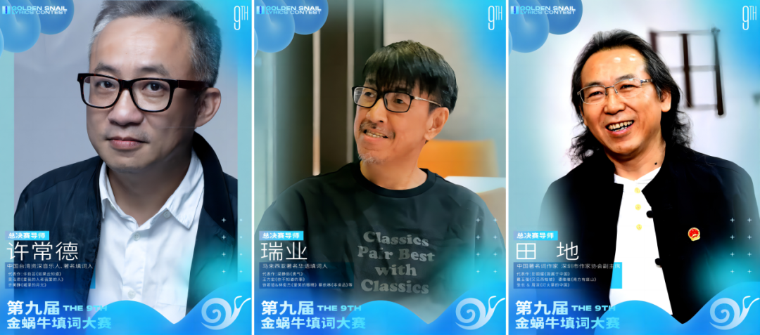 第九届金蜗牛填词大赛 由深圳市华唱原创音乐基金会发起、合纵文化集团主办,深圳市本色连锁实业有限公司承办,匠星娱乐、匠星音乐、匠星音乐学院、深圳美丽南方音乐厂牌、够正音乐、胡桃里音乐酒馆等品牌协办,深圳市振兴交响乐发展基金会、深圳市青年社会组织联合会、深圳市青年音乐家协会、QQ音乐·新鲜制造工作室、深圳电台飞扬971、深圳市绿色建筑行业协会、音乐人网等数十家单位联合推广。赛事特邀知名华语填词人许常德、瑞业,携手著名词作家田地、深圳交响乐团音乐总监兼首席指挥林大叶、歌手尼克、校园民谣运动唱作人赵节等,担任评审导师。