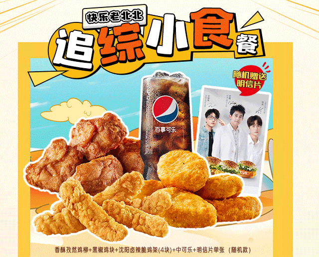 6、优惠券:[“快乐老北北”追综小食餐兑换券]--价值15.9元,共1000张(正价商品任意消费使用)