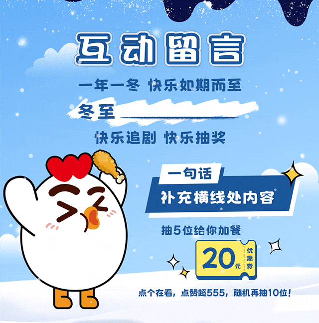 【本期互动说明】参与本期互动留言,我们将抽取5位小伙伴送【20元餐券,需在华莱士自助点餐小程序】,点赞超555,将再随机抽取10位(注:留言被选中后,一经删除即视为弃权)留言时间截止至12月26日,同时我们将在下一条推文评论区公布获奖名单,请届时关注中奖信息!获奖粉丝需在收到获奖通知的72小时内,回复相关信息,以便工作人员派发奖品,逾期回复视为弃权。